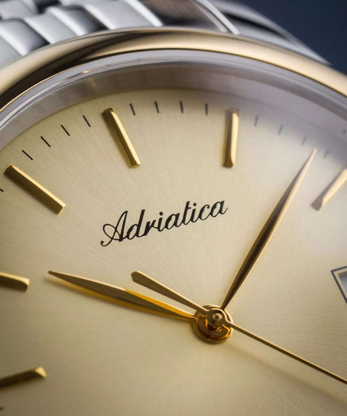 Часы Adriatica A1024.2111Q представляют собой идеальное сочетание элегантности и функциональности, разработанное для современных мужчин. Их стильный циферблат защищен сапфировым стекломСапфировое стеклоПрочный и надёжный материал из кристалла сапфира синтетического происхождения, характеризующийся особой твёрдостью и устойчивостью к царапинам и повреждениям., что придает дополнительную устойчивость к царапинам. Корпус из нержавеющей стали подчеркивает их изысканность и долговечность. Надежный кварцевый механизм с калибром RONDA 515 гарантирует точность времени, а водозащита WR 50 (5 ATM) обеспечивает защиту от воды в различных условиях. Браслет из нержавеющей стали  с раскладной застёжкойРаскладная застёжкаТакой тип застёжки используется только на браслетах из металла. Она никогда не раскрывается полностью, происходит разделение на 2 и более частей. Раскладывающая застёжка снизит вероятность потери часов к минимуму., гармонично дополняет общий дизайн и обеспечивает комфортное ношение на запястье. Часы оснащены функцией отображения даты в окошке в положении 3 часа, что добавляет практичности в повседневной жизни. БезельБезельВнешний ободок, закрепляющий стекло. В спортивных часах так называется поворотное кольцо с делениями на циферблате, выполняет роль таймера – замеряет отрезки времени на шкале. Неподвижный безель – элемент декора. Однонаправленно вращающийся безель на дайверских часах позволяет фиксировать моменты погружения и выныривания на поверхность. с PVD-покрытиемPVDУльтратонкое покрытие наносится в технике вакуумного напыления, сочетает в себе нитрид титана особой прочности со слоем золота или оксида хрома. Несёт в себе декоративную или защитную функцию..