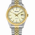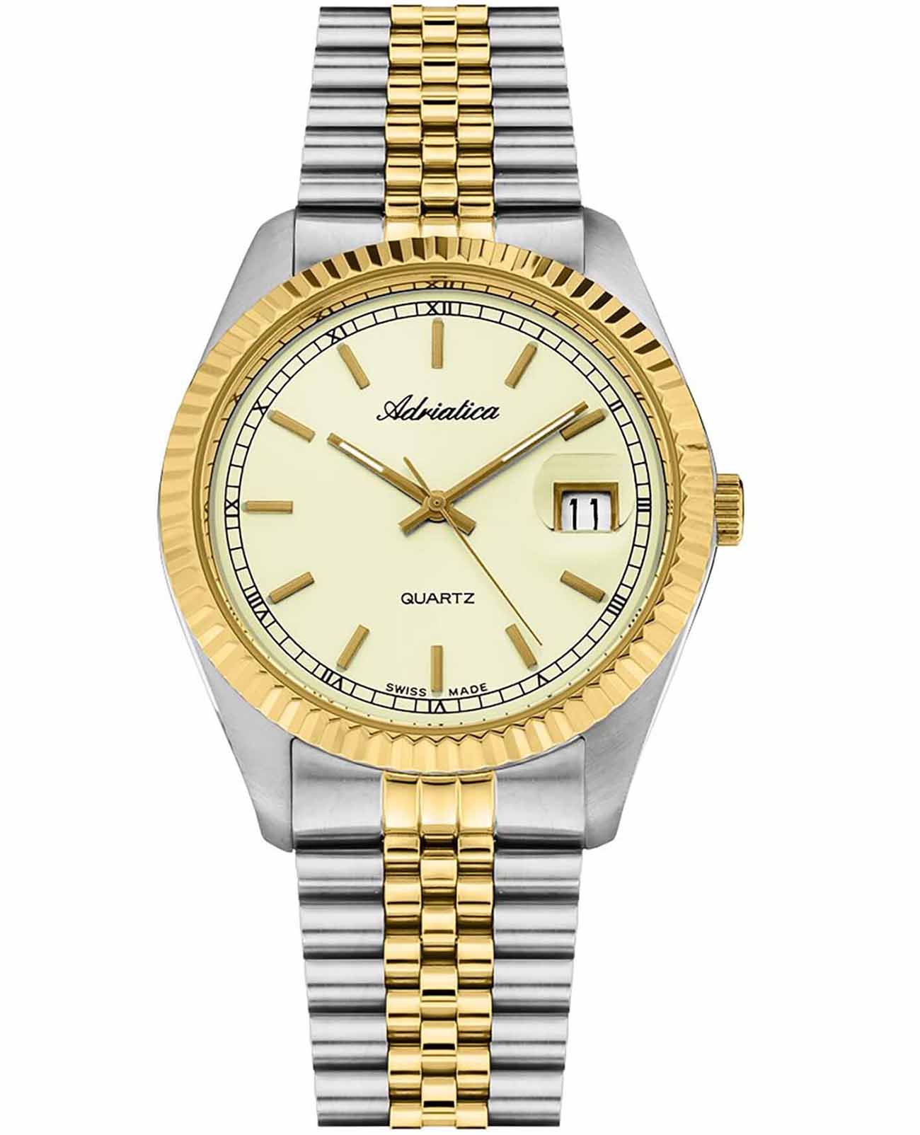 Часы Adriatica A1090.2111Q воплощают в себе классический стиль и надежность, идеально подходящие для современных мужчин. Их золотистый циферблат, защищенный минеральным стекломМинеральное стеклоМинеральное стекло представляет собой искусственно выращенный минерал кварца. Такое стекло отличается особой устойчивостью к повреждениям и царапинам. Уступает по некоторым качествам сапфировому стеклу., заключен в корпус из прочной нержавеющей стали, а их безельБезельВнешний ободок, закрепляющий стекло. В спортивных часах так называется поворотное кольцо с делениями на циферблате, выполняет роль таймера – замеряет отрезки времени на шкале. Неподвижный безель – элемент декора. Однонаправленно вращающийся безель на дайверских часах позволяет фиксировать моменты погружения и выныривания на поверхность. золотистого цвета с PVDPVDУльтратонкое покрытие наносится в технике вакуумного напыления, сочетает в себе нитрид титана особой прочности со слоем золота или оксида хрома. Несёт в себе декоративную или защитную функцию. покрытием. Надежный кварцевый механизм с калибром RONDA 515 обеспечивает точность, а водозащита уровня WR 50 (5 ATM) делает их устойчивыми к воздействию воды. Стальной браслет с частичным PVDPVDУльтратонкое покрытие наносится в технике вакуумного напыления, сочетает в себе нитрид титана особой прочности со слоем золота или оксида хрома. Несёт в себе декоративную или защитную функцию. покрытием и раскладной застёжкойРаскладная застёжкаТакой тип застёжки используется только на браслетах из металла. Она никогда не раскрывается полностью, происходит разделение на 2 и более частей. Раскладывающая застёжка снизит вероятность потери часов к минимуму. подчеркивает элегантный стиль и комфортно сидит на запястье. Часы оснащены функцией отображения даты в окошке в положении 3 часа, что добавляет практичности в повседневной жизни. Люминесцентное покрытиеЛюминесцентное покрытиеПозволяет считывать показания времени в темноте. Производители наносят на стрелки, часовые индексы, безель или поверхность циферблата светонакопительный состав, дающий холодное свечение. на стрелках и метках обеспечивает отличную видимость в темноте.