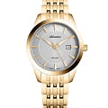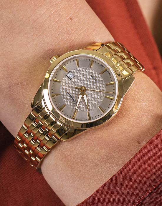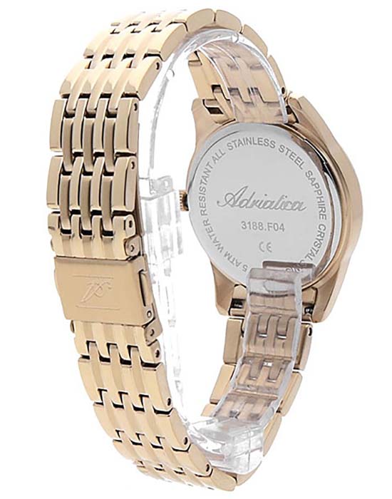 Часы Adriatica A3188.1117Q представляют собой сочетание швейцарской точности и изысканного дизайна. Эти часы из коллекции Premier созданы для тех, кто ценит утонченность и надежность. Корпус и безельБезельВнешний ободок, закрепляющий стекло. В спортивных часах так называется поворотное кольцо с делениями на циферблате, выполняет роль таймера – замеряет отрезки времени на шкале. Неподвижный безель – элемент декора. Однонаправленно вращающийся безель на дайверских часах позволяет фиксировать моменты погружения и выныривания на поверхность. этих часов выполнены из нержавеющей стали с PVDPVDУльтратонкое покрытие наносится в технике вакуумного напыления, сочетает в себе нитрид титана особой прочности со слоем золота или оксида хрома. Несёт в себе декоративную или защитную функцию. покрытием, что придает изделию элегантность и долговечность. Сердцем часов является кварцевый механизм ETA F04, обеспечивающий высокую точность хода. Сапфировое стеклоСапфировое стеклоПрочный и надёжный материал из кристалла сапфира синтетического происхождения, характеризующийся особой твёрдостью и устойчивостью к царапинам и повреждениям. защищает изящный серебристый циферблат, а люминесцентное покрытиеЛюминесцентное покрытиеПозволяет считывать показания времени в темноте. Производители наносят на стрелки, часовые индексы, безель или поверхность циферблата светонакопительный состав, дающий холодное свечение. на стрелках облегчает чтение времени в условиях низкой освещенности. Часы обладают водозащитой до 5 ATM, что делает их устойчивыми к случайным воздействиям воды. Стальной браслет, выполненный из нержавеющей стали с PVDPVDУльтратонкое покрытие наносится в технике вакуумного напыления, сочетает в себе нитрид титана особой прочности со слоем золота или оксида хрома. Несёт в себе декоративную или защитную функцию. покрытием, отличается комфортом и надежностью, а раскладная застёжкаРаскладная застёжкаТакой тип застёжки используется только на браслетах из металла. Она никогда не раскрывается полностью, происходит разделение на 2 и более частей. Раскладывающая застёжка снизит вероятность потери часов к минимуму. обеспечивает удобство ношения. Часы оснащены функцией отображения даты в окошке в положении 3 часа, что добавляет практичности в повседневной жизни.