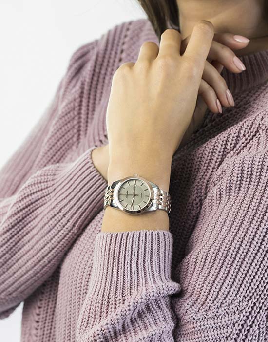 Часы Adriatica A3188.R117Q представляют собой сочетание швейцарской точности и изысканного дизайна. Эти часы из коллекции Premier созданы для тех, кто ценит утонченность и надежность. Корпус этих часов выполнен из нержавеющей стали, а безельБезельВнешний ободок, закрепляющий стекло. В спортивных часах так называется поворотное кольцо с делениями на циферблате, выполняет роль таймера – замеряет отрезки времени на шкале. Неподвижный безель – элемент декора. Однонаправленно вращающийся безель на дайверских часах позволяет фиксировать моменты погружения и выныривания на поверхность. с золотистым PVDPVDУльтратонкое покрытие наносится в технике вакуумного напыления, сочетает в себе нитрид титана особой прочности со слоем золота или оксида хрома. Несёт в себе декоративную или защитную функцию. покрытием, что придает изделию элегантность и долговечность. Сердцем часов является кварцевый механизм ETA F04, обеспечивающий высокую точность хода. Сапфировое стеклоСапфировое стеклоПрочный и надёжный материал из кристалла сапфира синтетического происхождения, характеризующийся особой твёрдостью и устойчивостью к царапинам и повреждениям. защищает изящный серебристый циферблат, а люминесцентное покрытиеЛюминесцентное покрытиеПозволяет считывать показания времени в темноте. Производители наносят на стрелки, часовые индексы, безель или поверхность циферблата светонакопительный состав, дающий холодное свечение. на стрелках облегчает чтение времени в условиях низкой освещенности. Часы обладают водозащитой до 5 ATM, что делает их устойчивыми к случайным воздействиям воды. Стальной браслет, выполненный из нержавеющей стали с частичным PVDPVDУльтратонкое покрытие наносится в технике вакуумного напыления, сочетает в себе нитрид титана особой прочности со слоем золота или оксида хрома. Несёт в себе декоративную или защитную функцию. покрытием, отличается комфортом и надежностью, а раскладная застёжкаРаскладная застёжкаТакой тип застёжки используется только на браслетах из металла. Она никогда не раскрывается полностью, происходит разделение на 2 и более частей. Раскладывающая застёжка снизит вероятность потери часов к минимуму. обеспечивает удобство ношения. Часы оснащены функцией отображения даты в окошке в положении 3 часа, что добавляет практичности в повседневной жизни.