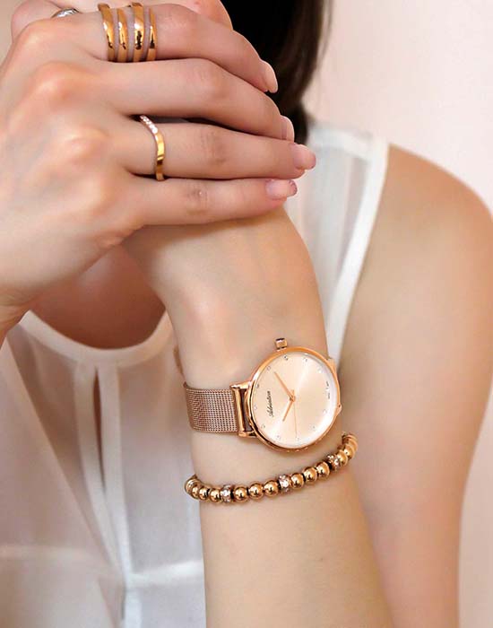 Женские часы с минеральным стеклом Adriatica A3573.9143Q, кварцевый механизм с высокой точностью. Класс водозащиты: 30 метров, позволит защитить корпус от случайных брызг или капель дождя. Корпус часов изготовлен из стали, розового цвета.