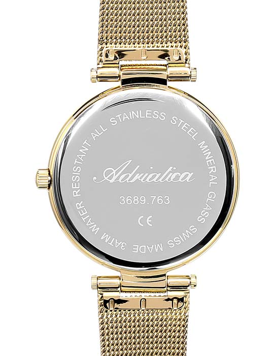 Женские часы с минеральным стеклом Adriatica A3689.1143Q, кварцевый механизм с высокой точностью. Класс водозащиты: 30 метров, позволит защитить корпус от случайных брызг или капель дождя. Корпус часов изготовлен из стали, золотистого цвета.