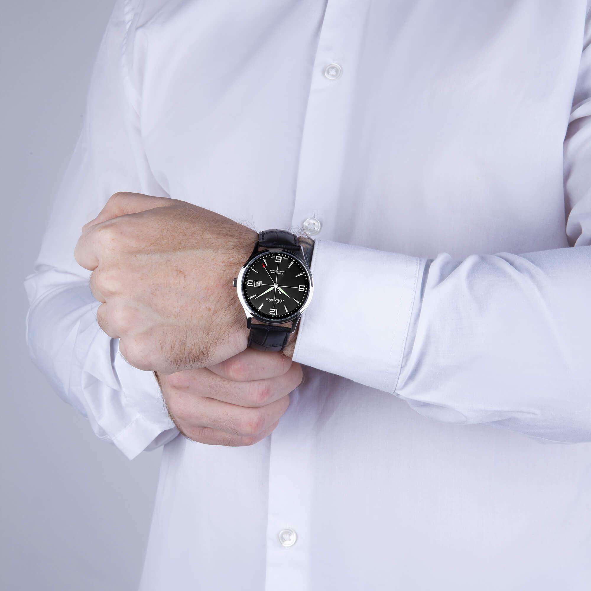 Часы Adriatica A8331.5254Q воплощают в себе элегантность и функциональность, идеально подходящие для современных мужчин, ценящих швейцарское качество. Их черный циферблат защищенный минеральным стекломМинеральное стеклоМинеральное стекло представляет собой искусственно выращенный минерал кварца. Такое стекло отличается особой устойчивостью к повреждениям и царапинам. Уступает по некоторым качествам сапфировому стеклу., заключен в корпус из нержавеющей стали диаметром 42 мм и толщиной 10 мм. Надежный кварцевый механизм с калибром Ronda 715/ETA F06 обеспечивает высокую точность, а водозащита 5 ATM делает часы устойчивыми к воздействию воды. Черный кожаный ремень обеспечивает комфортное ношение и подчеркивает элегантность модели. Часы оснащены функцией отображения даты в окошке в положении 3 часа, что добавляет практичности в повседневной жизни. Люминесцентное покрытиеЛюминесцентное покрытиеПозволяет считывать показания времени в темноте. Производители наносят на стрелки, часовые индексы, безель или поверхность циферблата светонакопительный состав, дающий холодное свечение. на стрелках обеспечивает отличную видимость в темноте. Эти часы – идеальный выбор для тех, кто ценит изысканный стиль и швейцарскую точность.