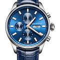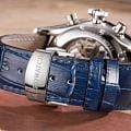 Часы оснащены надежным механическим механизмом Valjoux 7750 с автоподзаводом и хронографомХронографФункция позволяет измерять отрезки времени с особой точностью: часы, минуты, секунды. Верным признаком хронографа является наличие на циферблате 3 дополнительных окошек-счётчиков., который обеспечивает точный ход и долговечность. В модели установлено 25 камней, обеспечивающих плавность и надежность работы механизма.