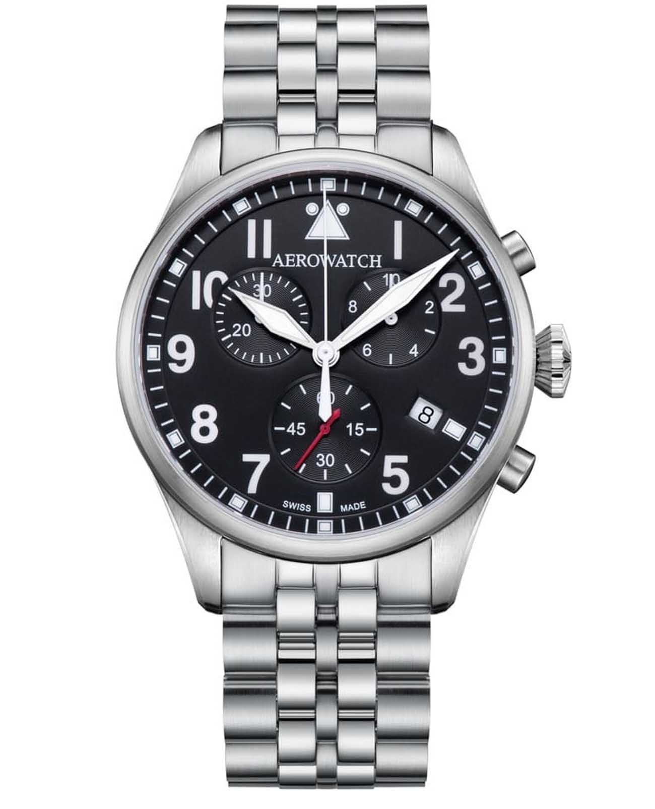 Мужские наручные часы-хронографХронографФункция позволяет измерять отрезки времени с особой точностью: часы, минуты, секунды. Верным признаком хронографа является наличие на циферблате 3 дополнительных окошек-счётчиков. Aerowatch 79990 AA03 M — это классический пример швейцарского часового мастерства. Модель выполнена в круглом корпусе диаметром 42 мм из нержавеющей стали, что делает их универсальным аксессуаром для повседневного и торжественного образа.