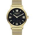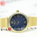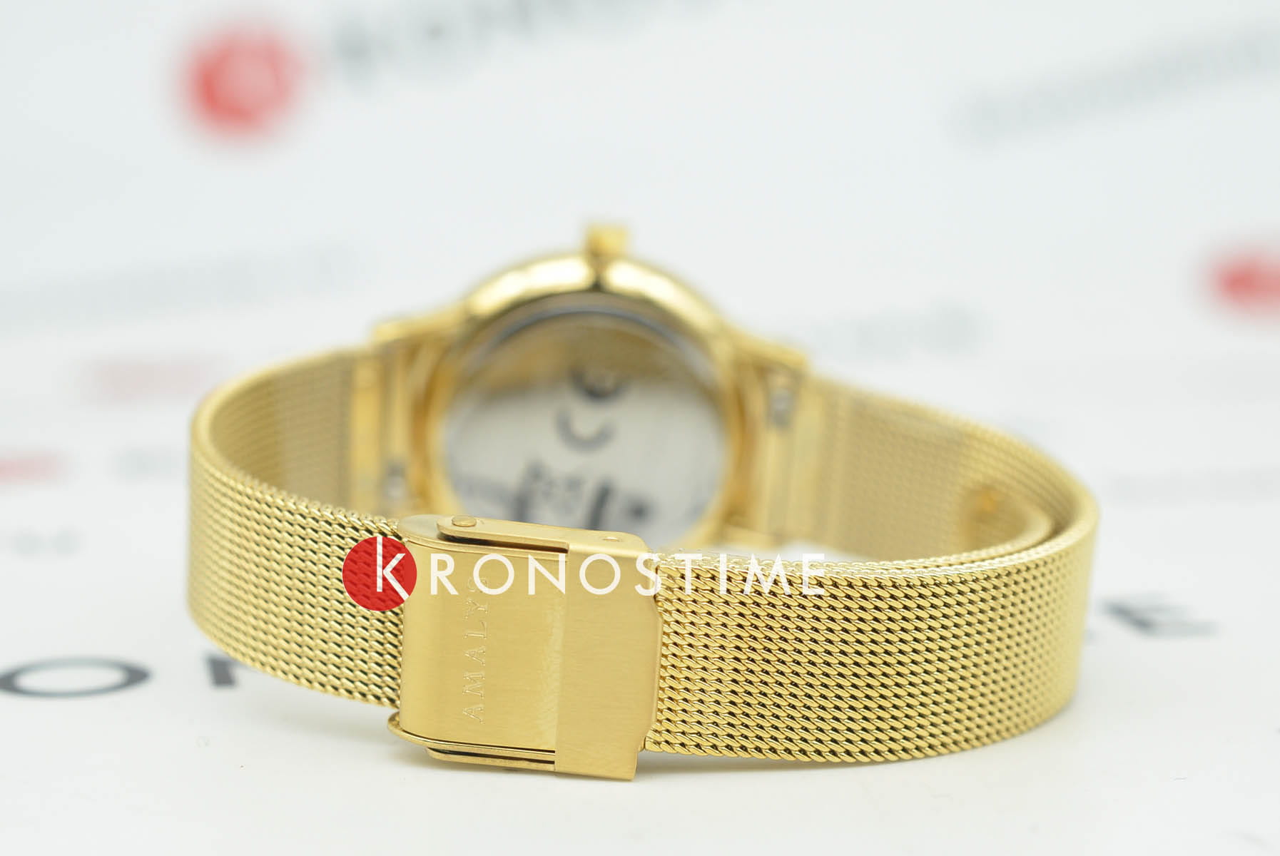 Amalys AMW-200 — женская модель с утончённым классическим дизайном, в которой сочетаются элегантность и практичность. Круглый корпус диаметром 28 мм выполнен из нержавеющей стали с PVD-покрытиемPVDУльтратонкое покрытие наносится в технике вакуумного напыления, сочетает в себе нитрид титана особой прочности со слоем золота или оксида хрома. Несёт в себе декоративную или защитную функцию., гармонирующим с браслетом шириной 14 мм в том же исполнении. Защитную функцию выполняет сапфировое стеклоСапфировое стеклоПрочный и надёжный материал из кристалла сапфира синтетического происхождения, характеризующийся особой твёрдостью и устойчивостью к царапинам и повреждениям., стойкое к царапинам и сохраняющее прозрачность. Механизм — кварцевый, обеспечивающий точность и стабильность хода. Браслет миланского плетения с PVD-покрытиемPVDУльтратонкое покрытие наносится в технике вакуумного напыления, сочетает в себе нитрид титана особой прочности со слоем золота или оксида хрома. Несёт в себе декоративную или защитную функцию. снабжён раскладным замкомРаскладной замокДанный вариант застежки используется только на часах с металлическим браслетом. Отличительная особенность такого крепления в том, что длина браслета становится универсальной и вы можете самостоятельно отрегулировать нужный вам размер – застежка просто двигается по браслету часов., который сочетает надёжность фиксации и удобство повседневного использования. Водозащита 5 ATM защищает часы от случайных брызг и дождя. Циферблат с римскими индексами и изящными стрелками подчёркивает классическую эстетику модели, делая её уместной как в повседневных образах, так и в торжественной обстановке.