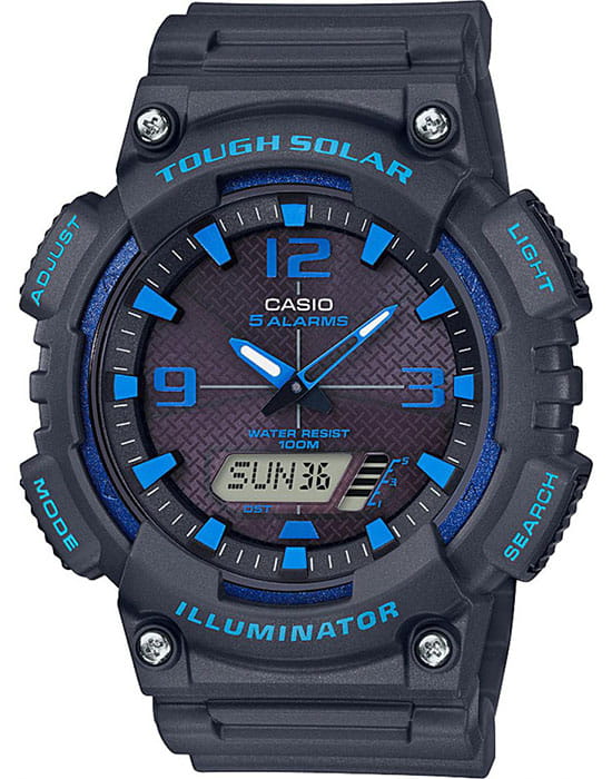 Наручные часы AQ-S810W-8A2VEF с цифроаналоговой индикацией для активного отдыха. Надежные и недорогие. Прочный пластиковый корпус, водостойкость до 100 метров. Многофункциональный кварцевый механизм, солнечная батарея Tough Solar яркая светодиодная подсветка.