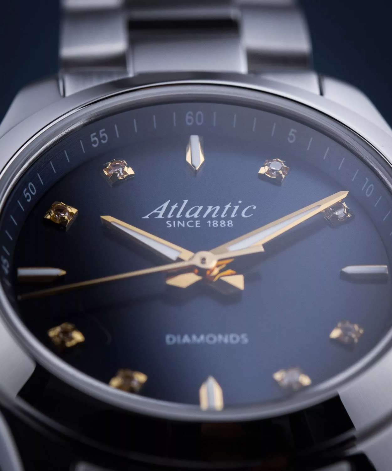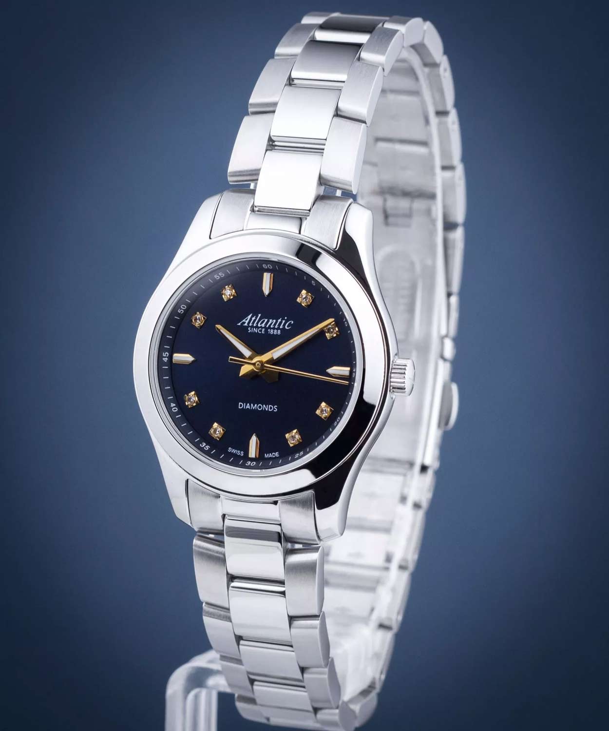 Женские швейцарские часы Atlantic Seapair Ladies 20335.41.57G, кварцевый механизм с высокой точностью. Циферблат часов с люминесцентным покрытиемЛюминесцентное покрытиеПозволяет считывать показания времени в темноте. Производители наносят на стрелки, часовые индексы, безель или поверхность циферблата светонакопительный состав, дающий холодное свечение. стрелок и меток, дополнен сапфировым стекломСапфировое стеклоПрочный и надёжный материал из кристалла сапфира синтетического происхождения, характеризующийся особой твёрдостью и устойчивостью к царапинам и повреждениям., устойчивым к появлению царапин и обладающее высокой прозрачностью. Класс водозащиты: 30 метров, позволит защитить корпус от случайных брызг или капель дождя. Корпус часов изготовлен из нержавеющей стали. Стальной браслет с раскладной застёжкойРаскладная застёжкаТакой тип застёжки используется только на браслетах из металла. Она никогда не раскрывается полностью, происходит разделение на 2 и более частей. Раскладывающая застёжка снизит вероятность потери часов к минимуму.. Циферблат с метками в виде штрихов и точек, инкрустированных кристаллами.