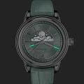 Циферблат в стиле Art Deco украшает усложнение фаз Луны в верхней половине, обрамлённой тонким кольцом облаков. Отмечено окно даты в положении «6 часов». Стрелки и накладные метки обработаны люминесцентным покрытиемЛюминесцентное покрытиеПозволяет считывать показания времени в темноте. Производители наносят на стрелки, часовые индексы, безель или поверхность циферблата светонакопительный состав, дающий холодное свечение. Superluminova — для уверенного считывания в темноте. Поверхность защищена сапфировым стекломСапфировое стеклоПрочный и надёжный материал из кристалла сапфира синтетического происхождения, характеризующийся особой твёрдостью и устойчивостью к царапинам и повреждениям. с антибликовым покрытием.