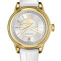 Aviator Douglas MoonFlight V.1.33.1.343.4 — элегантные дамские швейцарские часы с утончённой авиационной эстетикой. Корпус 36 мм из нержавеющей стали 316L с PVD-покрытиемPVDУльтратонкое покрытие наносится в технике вакуумного напыления, сочетает в себе нитрид титана особой прочности со слоем золота или оксида хрома. Несёт в себе декоративную или защитную функцию. обладает компактными пропорциями и удобным профилем. Циферблат в стиле Art Deco украшает усложнение фаз Луны в верхней половине, обрамлённой тонким кольцом облаков. Отмечено окно даты в положении «6 часов». Стрелки обработаны люминесцентным покрытиемЛюминесцентное покрытиеПозволяет считывать показания времени в темноте. Производители наносят на стрелки, часовые индексы, безель или поверхность циферблата светонакопительный состав, дающий холодное свечение. Superluminova — для уверенного считывания в темноте. Поверхность защищена сапфировым стекломСапфировое стеклоПрочный и надёжный материал из кристалла сапфира синтетического происхождения, характеризующийся особой твёрдостью и устойчивостью к царапинам и повреждениям. с антибликовым покрытиемАнтибликовое покрытиеСлой оксида металла в 0,13-0,3 микрон, благодаря которому стекло часов не бликует и не отражает свет. Антибликовое покрытие уменьшает отражение света в 10 раз, обеспечивая отличную читаемость показателей циферблата.. Сердце модели — швейцарский кварцевый механизм Ronda 708 с функцией отображения лунных фаз. Водозащита до 100 метров создают надёжную основу для эксплуатации. Кожаный ремень со стандартной застежкой сочетает в себе комфорт, элегантность и практичность. Aviator Douglas MoonFlight — это гармоничное сочетание авиационного наследия, женской элегантности и технической изысканности, воплощённое в элегантном и функциональном аксессуаре. Лимитированная серия.