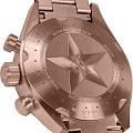 Внутри установлен швейцарский кварцевый механизм, который обеспечивает функции хронографа и GMT, обладает точностью — ±20 с/мес. и длительным сроком службы батареи.