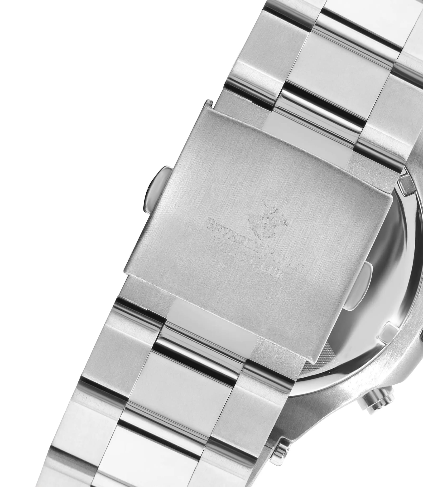 Американские женские часы с минеральным стеклом Beverly Hills Polo Club BP3301X.320 с минеральным стекломМинеральное стеклоМинеральное стекло представляет собой искусственно выращенный минерал кварца. Такое стекло отличается особой устойчивостью к повреждениям и царапинам. Уступает по некоторым качествам сапфировому стеклу., кварцевый механизм с высокой точностью. Класс водозащиты: 30 метров, позволит защитить корпус от случайных брызг или капель дождя. Корпус и браслет часов изготовлены из стали марки 316L, она используется в ювелирных украшениях и часах. Браслет с раскладной застёжкойРаскладная застёжкаТакой тип застёжки используется только на браслетах из металла. Она никогда не раскрывается полностью, происходит разделение на 2 и более частей. Раскладывающая застёжка снизит вероятность потери часов к минимуму..
