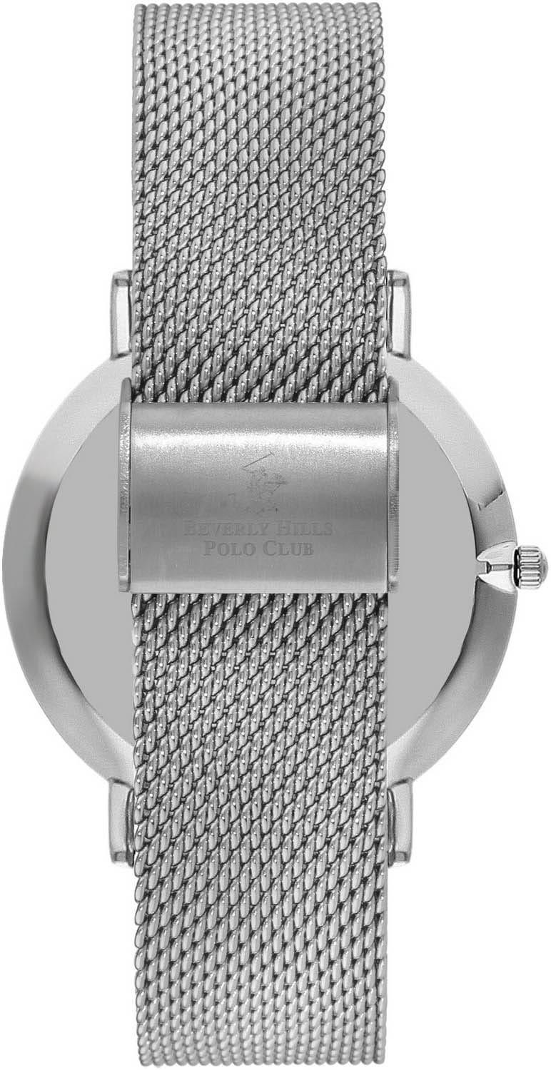 Американские мужские часы с минеральным стекломМинеральное стеклоМинеральное стекло представляет собой искусственно выращенный минерал кварца. Такое стекло отличается особой устойчивостью к повреждениям и царапинам. Уступает по некоторым качествам сапфировому стеклу. Beverly Hills Polo Club BP3321X.350, кварцевый механизм с высокой точностью. Класс водозащиты: 50 метров. Стальной корпус серебристого цвета. Браслет на раскладной застёжкеРаскладная застёжкаТакой тип застёжки используется только на браслетах из металла. Она никогда не раскрывается полностью, происходит разделение на 2 и более частей. Раскладывающая застёжка снизит вероятность потери часов к минимуму..