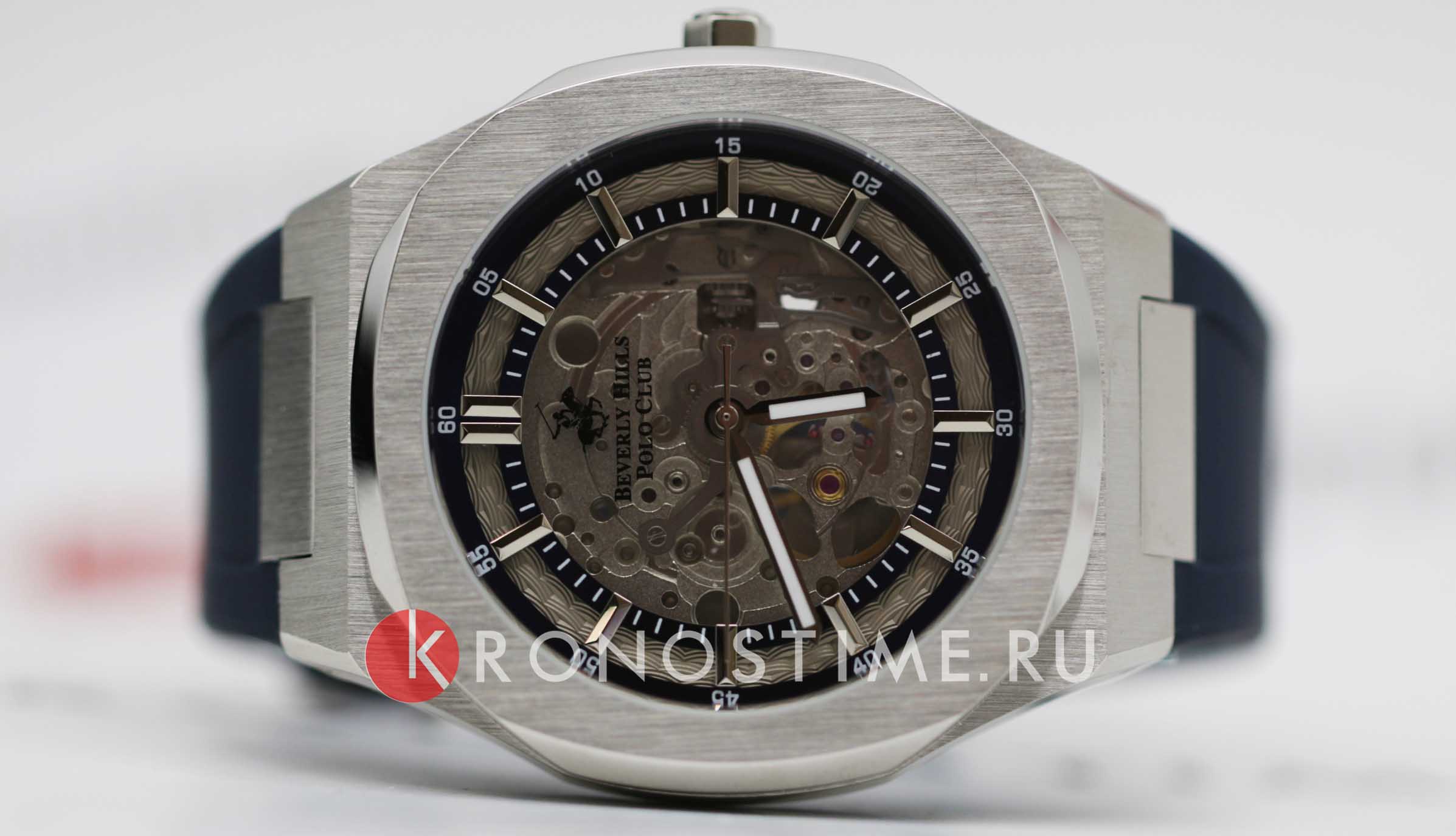 Американские мужские часы-скелетоны Beverly Hills Polo Club BP3543X.399 с надёжным автоматическим механизмом. Минеральное стеклоМинеральное стеклоМинеральное стекло представляет собой искусственно выращенный минерал кварца. Такое стекло отличается особой устойчивостью к повреждениям и царапинам. Уступает по некоторым качествам сапфировому стеклу. устойчивое к появлению царапин, обладающее высокой прозрачностью. Класс водозащиты: 30 метров, позволит защитить корпус от случайных брызг или капель дождя. Корпус часов изготовлен из нержавеющей стали. Каучуковый ремешок на стандартной застёжке. Класс водозащиты: 30 метров, позволит защитить корпус от случайных брызг или капель дождя. Стрелки и метки с люминесцентным покрытиемЛюминесцентное покрытиеПозволяет считывать показания времени в темноте. Производители наносят на стрелки, часовые индексы, безель или поверхность циферблата светонакопительный состав, дающий холодное свечение..