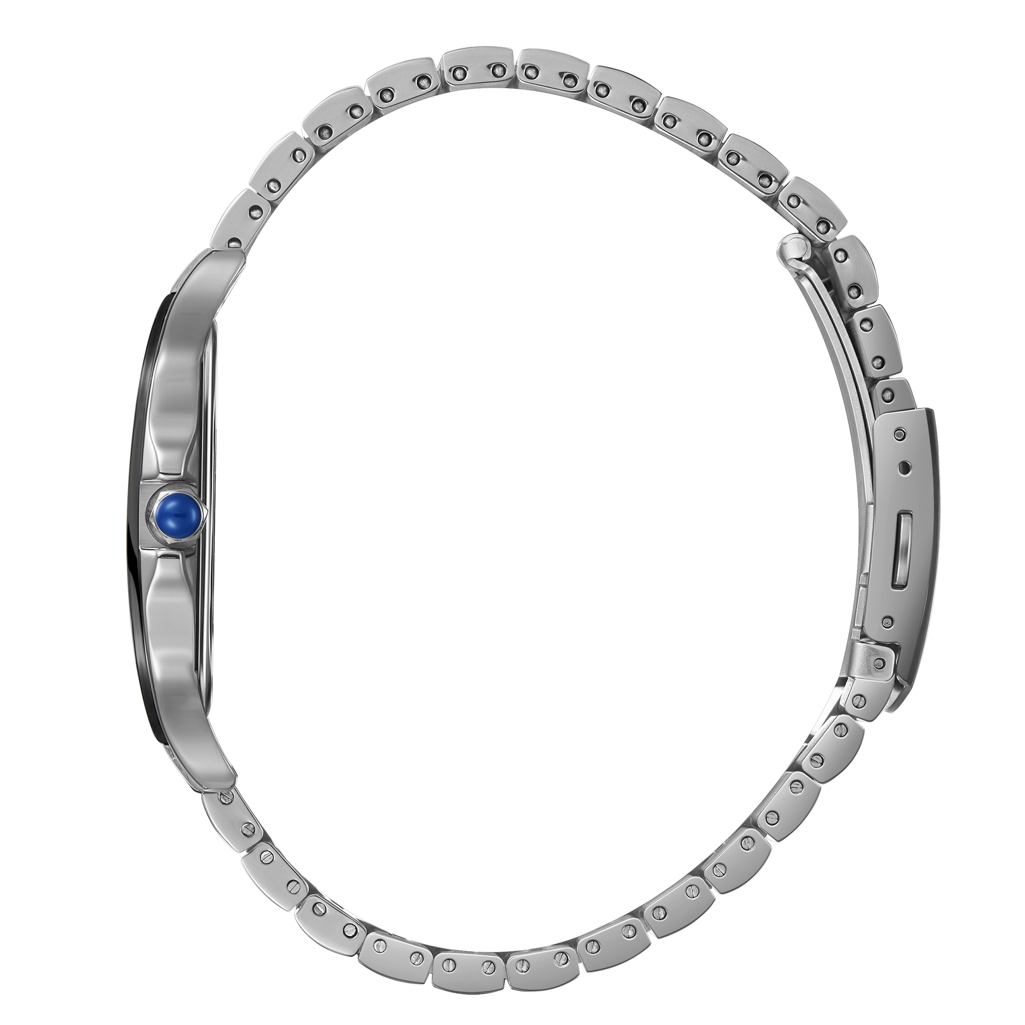 Высокий уровень водозащиты — до 100 метров — позволяет активно использовать часы в воде, будь то плавание, ныряние или другие водные виды спорта. Браслет из нержавеющей стали с удобной раскладной застёжкой обеспечивает комфортное ношение и надёжную фиксацию на запястье. БезельБезельВнешний ободок, закрепляющий стекло. В спортивных часах так называется поворотное кольцо с делениями на циферблате, выполняет роль таймера – замеряет отрезки времени на шкале. Неподвижный безель – элемент декора. Однонаправленно вращающийся безель на дайверских часах позволяет фиксировать моменты погружения и выныривания на поверхность. с IP-покрытиемIP-покрытиеМетод ионного напыления. Демонстрирует повышенную устойчивость к истиранию, окислению и химическим веществам. Под воздействием высокого давления и температуры около 1500°C молекулы металла надёжно соединяются с частицами корпуса часов..