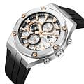 BEVERLY HILLS POLO CLUB BP3822X.331 — стильные мужские часы, сочетающие спортивную динамику и функциональность. Крупный корпус выполнен из нержавеющей стали серебристого цвета, диаметром 46,5 мм, гармонично дополнен каучуковым ремешком на стандартной застежке, что обеспечивает комфортное ношение. Минеральное стеклоМинеральное стеклоМинеральное стекло представляет собой искусственно выращенный минерал кварца. Такое стекло отличается особой устойчивостью к повреждениям и царапинам. Уступает по некоторым качествам сапфировому стеклу. с сапфировым покрытием защищает циферблат от царапин, а кварцевый механизм обеспечивает высокую точность. Благодаря своей универсальной эстетике эти часы уместны и в деловой среде, и в повседневном образе. Стрелки и метки с люминесцентным покрытиемЛюминесцентное покрытиеПозволяет считывать показания времени в темноте. Производители наносят на стрелки, часовые индексы, безель или поверхность циферблата светонакопительный состав, дающий холодное свечение., обеспечивающим хорошую читаемость в темноте. Указатель дня недели вынесен на отдельный циферблат, также присутствует индикация 24-часового формата времени. Окошко даты находится в положении между 4 и 5 часов. Идеальный выбор для тех, кто ценит элегантный дизайн и качество. Водозащита до 50 метров позволит защитить корпус от случайных брызг или капель дождя.