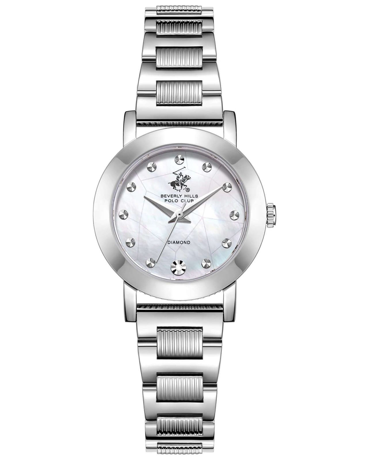 Женские кварцевые часы Beverly Hills Polo Club — это символ безупречного вкуса и роскоши. Корпус диаметром 28 мм выполнен из стали 316L. Циферблат перламутрового цвета оформлен точками, стрелками и инкрустирован одним синтетическим бриллиантом. Циферблат защищён минеральным стекломМинеральное стеклоМинеральное стекло представляет собой искусственно выращенный минерал кварца. Такое стекло отличается особой устойчивостью к повреждениям и царапинам. Уступает по некоторым качествам сапфировому стеклу. с сапфировым покрытием. Часы оснащены стальным браслетом на застёжке «бабочка» с кнопкамиЗастёжка "бабочка"Такой вид застёжки дополняется предохранителями, помогающими избежать случайного раскрытия браслета. Обладают изящным исполнением. . Водонепроницаемость 30 м позволяет использовать часы в повседневных условиях. Идеальный выбор для тех, кто ценит американское качество и универсальный дизайн.