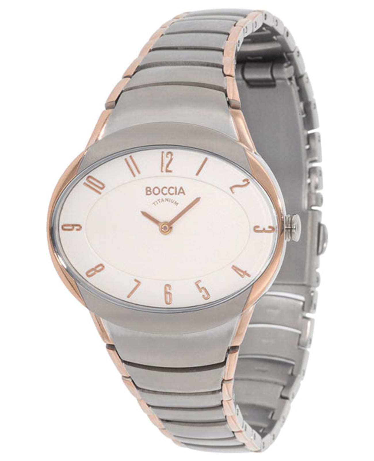 Женские немецкие титановые часы Boccia Titanium 3165-12, кварцевый механизм с высокой точностью. Класс водозащиты: 50 метров, позволит защитить корпус от случайных брызг или капель дождя. Корпус часов изготовлен из титана, цвета.