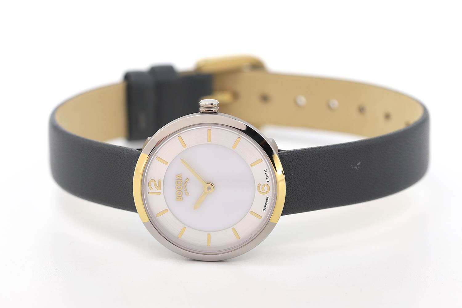 Женские немецкие титановые часы Boccia Titanium 3266-04, кварцевый механизм с высокой точностью. Сапфировое стекло устойчивое к появлению царапин, обладающее высокой прозрачностью. Класс водозащиты: 30 метров, позволит защитить корпус от случайных брызг или капель дождя. Корпус часов изготовлен из стали, цвета.