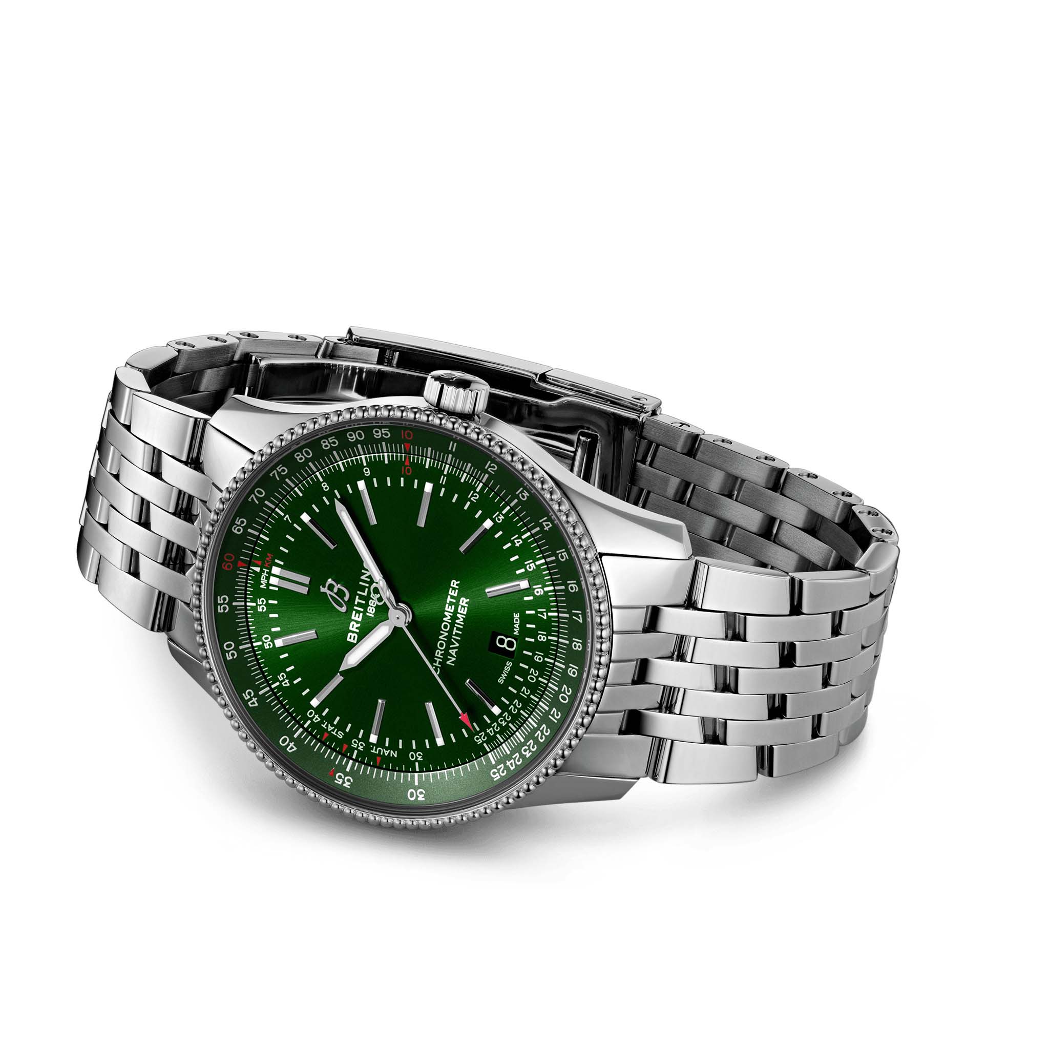 Мужские швейцарские часы-хронометр Breitling Navitimer Automatic 41 A17326361L1A1, механический механизм (автоматический калибр) с высокой точностью. Сапфировое стеклоСапфировое стеклоПрочный и надёжный материал из кристалла сапфира синтетического происхождения, характеризующийся особой твёрдостью и устойчивостью к царапинам и повреждениям. устойчивое к появлению царапин, обладающее высокой прозрачностью. Класс водозащиты: 30 метров, позволит защитить корпус от случайных брызг или капель дождя. Корпус часов изготовлен из стали. Стальной браслет с застёжкой-бабочкой с кнопкамиЗастёжка "бабочка"Такой вид застёжки дополняется предохранителями, помогающими избежать случайного раскрытия браслета. Обладают изящным исполнением. . Шкала тахиметраТахиметрРазмеченная шкала, располагается на ободке или безеле часов. Тахиметр позволяет рассчитать скорость на определённом участке пути, расстояние измеряется в километрах или милях. на циферблате. Окошко даты находится в положении 6 часов. Стрелки и метки с люминесцентным покрытиемЛюминесцентное покрытиеПозволяет считывать показания времени в темноте. Производители наносят на стрелки, часовые индексы, безель или поверхность циферблата светонакопительный состав, дающий холодное свечение..