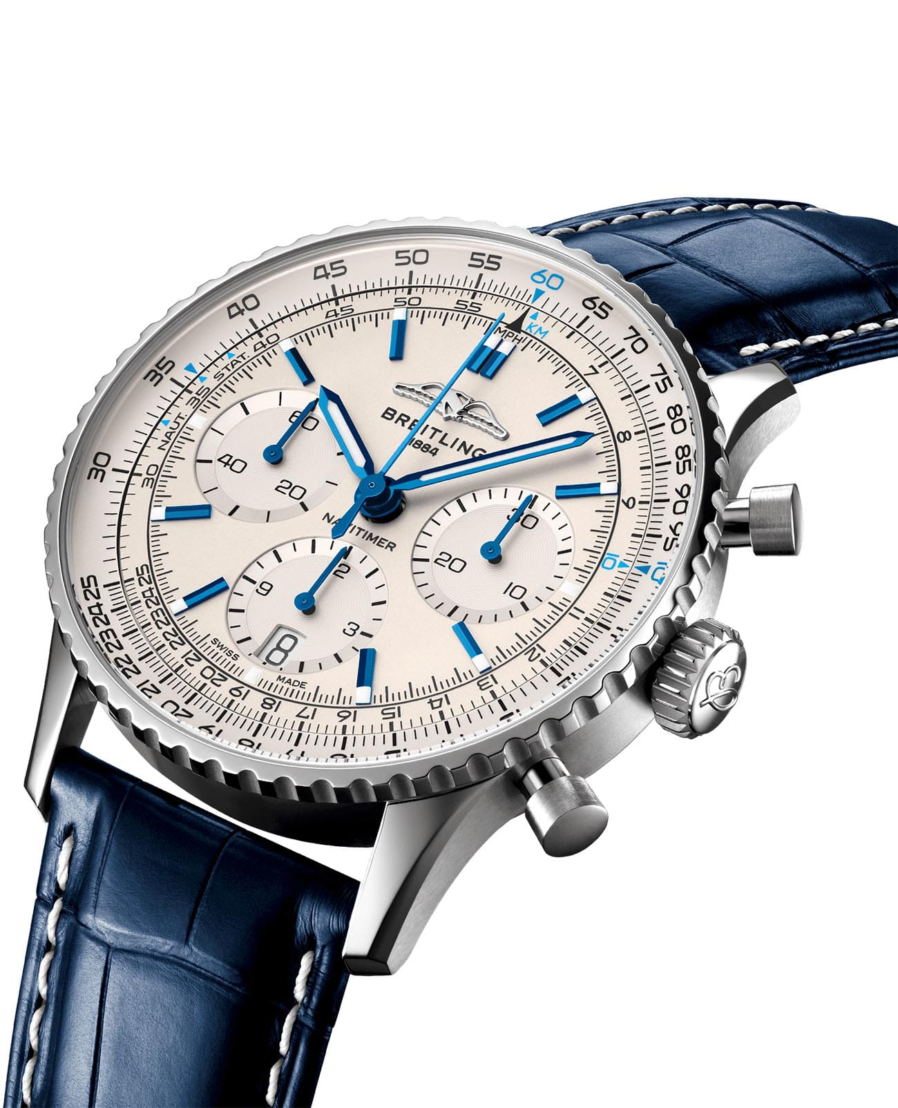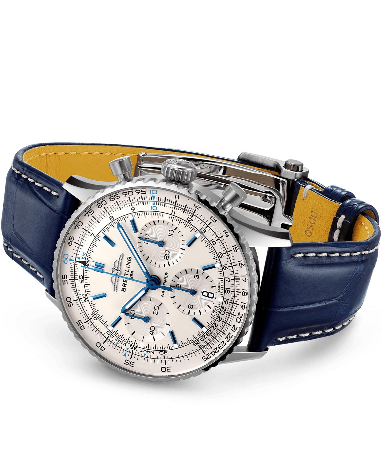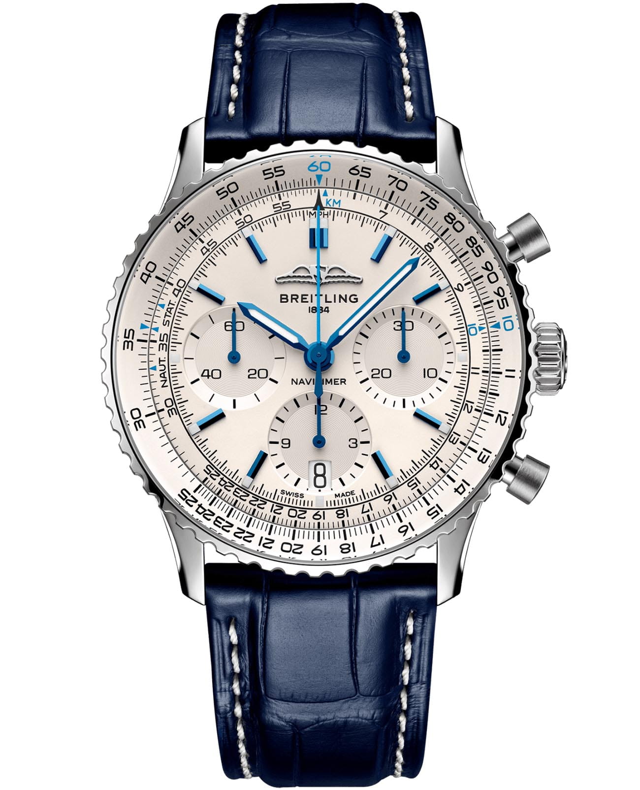 Мужские швейцарские часы-хронографХронографФункция позволяет измерять отрезки времени с особой точностью: часы, минуты, секунды. Верным признаком хронографа является наличие на циферблате 3 дополнительных окошек-счётчиков. с секундомеромСекундомерСекундоме́р — прибор, способный измерять интервалы времени с точностью до долей секунды. Breitling Navitimer B01 Chronograph 41 AB0139A71G1P1, механический механизм (автоматический калибр) с высокой точностью. С момента своего дебюта 70 лет назад icon от Breitling претерпел множество модификаций, но этот новый Navitimer отражает его самые классические функции, дополняя их современными усовершенствованиями. Сплющенная логарифмическая линейка и выпуклый кристалл создают иллюзию более изящного профиля. Сапфировое стеклоСапфировое стеклоПрочный и надёжный материал из кристалла сапфира синтетического происхождения, характеризующийся особой твёрдостью и устойчивостью к царапинам и повреждениям. устойчивое к появлению царапин, обладающее высокой прозрачностью. Класс водозащиты: 30 метров, позволит защитить корпус от случайных брызг или капель дождя. Корпус часов изготовлен из стали. Чередующиеся полированные и матовые металлические элементы создают блестящую, но в то же время сдержанную отделку. Кожаный ремешок на стандартной застёжке. Шкала тахиметраТахиметрРазмеченная шкала, располагается на ободке или безеле часов. Тахиметр позволяет рассчитать скорость на определённом участке пути, расстояние измеряется в километрах или милях. на циферблате. Часы имеют сертификат COSCСертификат COSCОфициальный сертификат, подтверждающий то, что часы ходят с особо высокой точностью. Для получения документа часы подвергаются тестовым испытаниям, разработанным швейцарским институтом тестирования хронометров COSC. Допустимая норма для механических часов -4/+6 секунд в день, для кварцевых моделей +/- 0,07 секунд в день.. Окошко даты находится в положении 6 часов. Стрелки и метки с люминесцентным покрытиемЛюминесцентное покрытиеПозволяет считывать показания времени в темноте. Производители наносят на стрелки, часовые индексы, безель или поверхность циферблата светонакопительный состав, дающий холодное свечение.. И если есть одно обновление, которое наверняка вызовет ностальгию, так это возвращение крыльев AOPA в исходное положение на 12 часов. Вот уже 70 лет оригинальные часы Breitling pilot в равной степени нравятся как авиаторам, так и ценителям вкуса. Это самые культовые часы Breitling, которые носят астронавты в космосе и крупнейшие звезды на земле, и одни из самых узнаваемых часов всех времен.