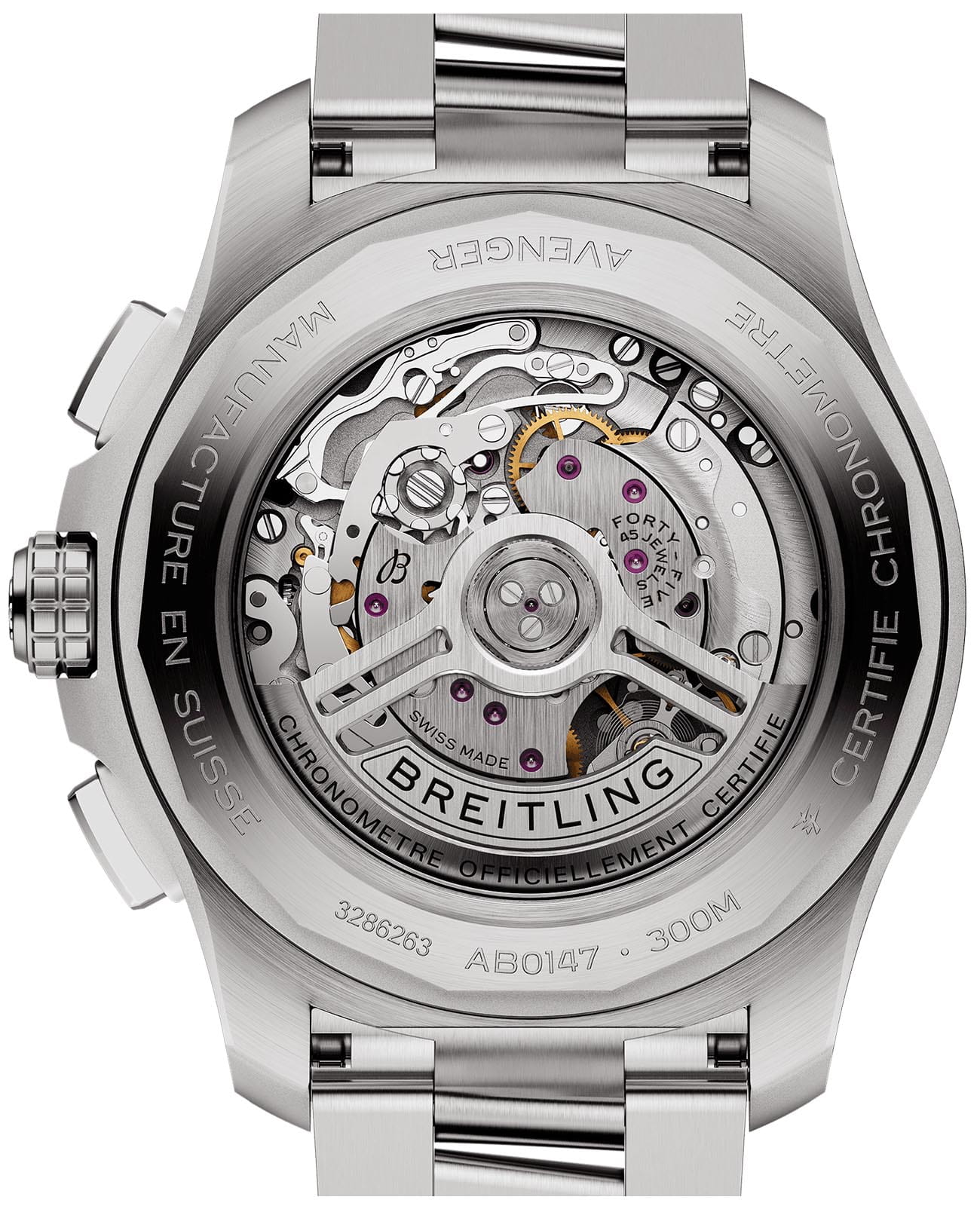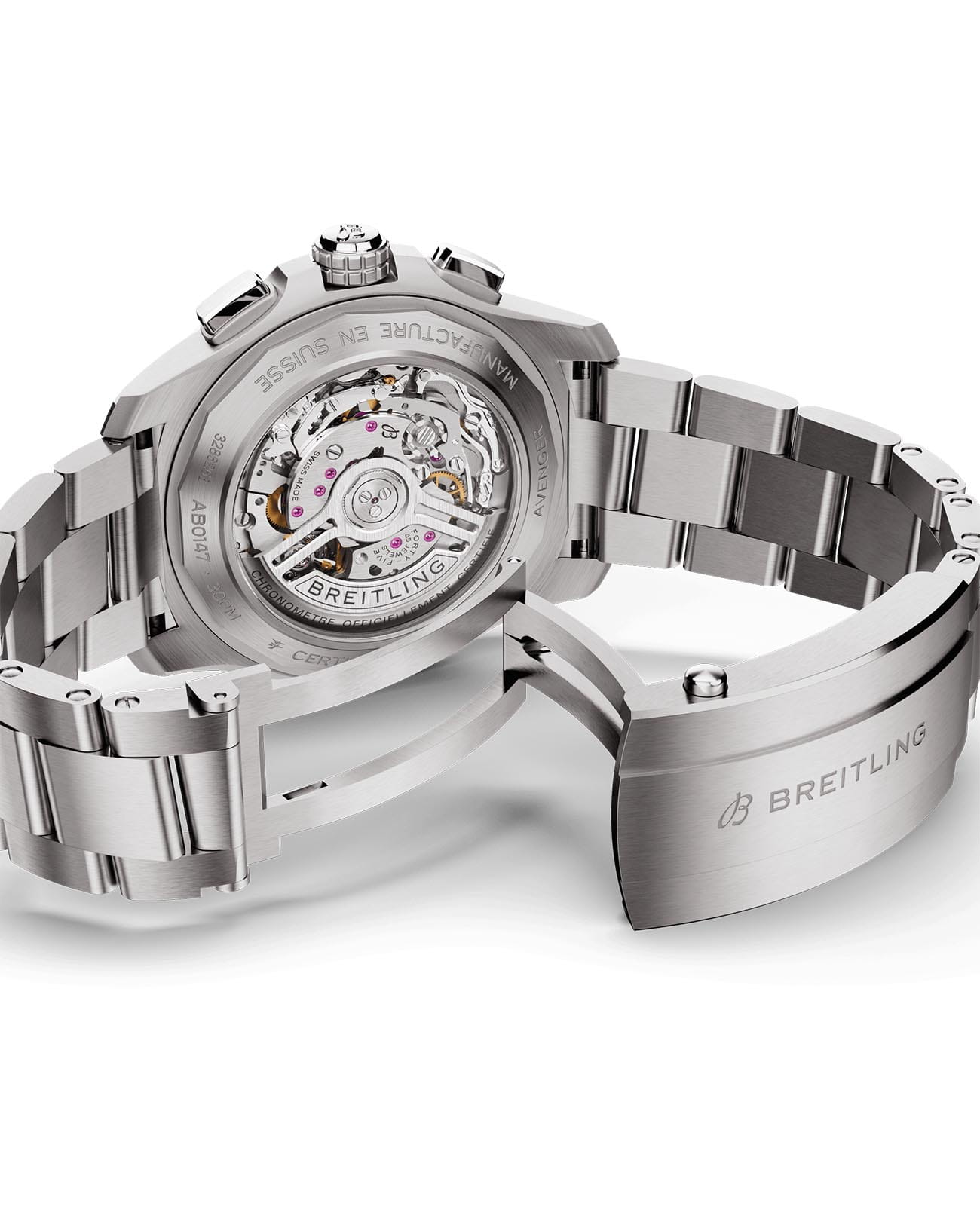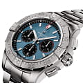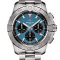 Мужские наручные часы c хронографомХронографФункция позволяет измерять отрезки времени с особой точностью: часы, минуты, секунды. Верным признаком хронографа является наличие на циферблате 3 дополнительных окошек-счётчиков. Breitling Avenger B01 Chronograph 44 AB0147101C1A1 с надёжным автоматическим механизмом. Корпус часов изготовлен из нержавеющей стали. Сапфировое стеклоСапфировое стеклоПрочный и надёжный материал из кристалла сапфира синтетического происхождения, характеризующийся особой твёрдостью и устойчивостью к царапинам и повреждениям. с антибликовым покрытием, устойчивое к мелким механическим повреждениям. Стальной браслет с раскладной застёжкойРаскладная застёжкаТакой тип застёжки используется только на браслетах из металла. Она никогда не раскрывается полностью, происходит разделение на 2 и более частей. Раскладывающая застёжка снизит вероятность потери часов к минимуму.. Стрелки и метки с люминесцентным покрытиемЛюминесцентное покрытиеПозволяет считывать показания времени в темноте. Производители наносят на стрелки, часовые индексы, безель или поверхность циферблата светонакопительный состав, дающий холодное свечение.. Однонаправленный безельБезельВнешний ободок, закрепляющий стекло. В спортивных часах так называется поворотное кольцо с делениями на циферблате, выполняет роль таймера – замеряет отрезки времени на шкале. Неподвижный безель – элемент декора. Однонаправленно вращающийся безель на дайверских часах позволяет фиксировать моменты погружения и выныривания на поверхность.. Класс водозащиты: 300 метров, позволит плавать, нырять и заниматься другими водными видами спорта.