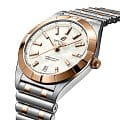 . Браслет с застёжкой-бабочкой с кнопкамиЗастёжка "бабочка"Такой вид застёжки дополняется предохранителями, помогающими избежать случайного раскрытия браслета. Обладают изящным исполнением. . Окошко даты находится в положении 6 часов. Часы имеют сертификат COSCСертификат COSCОфициальный сертификат, подтверждающий то, что часы ходят с особо высокой точностью. Для получения документа часы подвергаются тестовым испытаниям, разработанным швейцарским институтом тестирования хронометров COSC. Допустимая норма для механических часов -4/+6 секунд в день, для кварцевых моделей +/- 0,07 секунд в день.. БезельБезельВнешний ободок, закрепляющий стекло. В спортивных часах так называется поворотное кольцо с делениями на циферблате, выполняет роль таймера – замеряет отрезки времени на шкале. Неподвижный безель – элемент декора. Однонаправленно вращающийся безель на дайверских часах позволяет фиксировать моменты погружения и выныривания на поверхность. из красного 18-каратного золота18-каратное золотоОбозначение по каратной системе пробирования, оно показывает, сколько драгоценного металла содержится в изделии. 18 карат - в составе 75% чистого золота, соответствует 750 пробе.