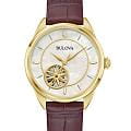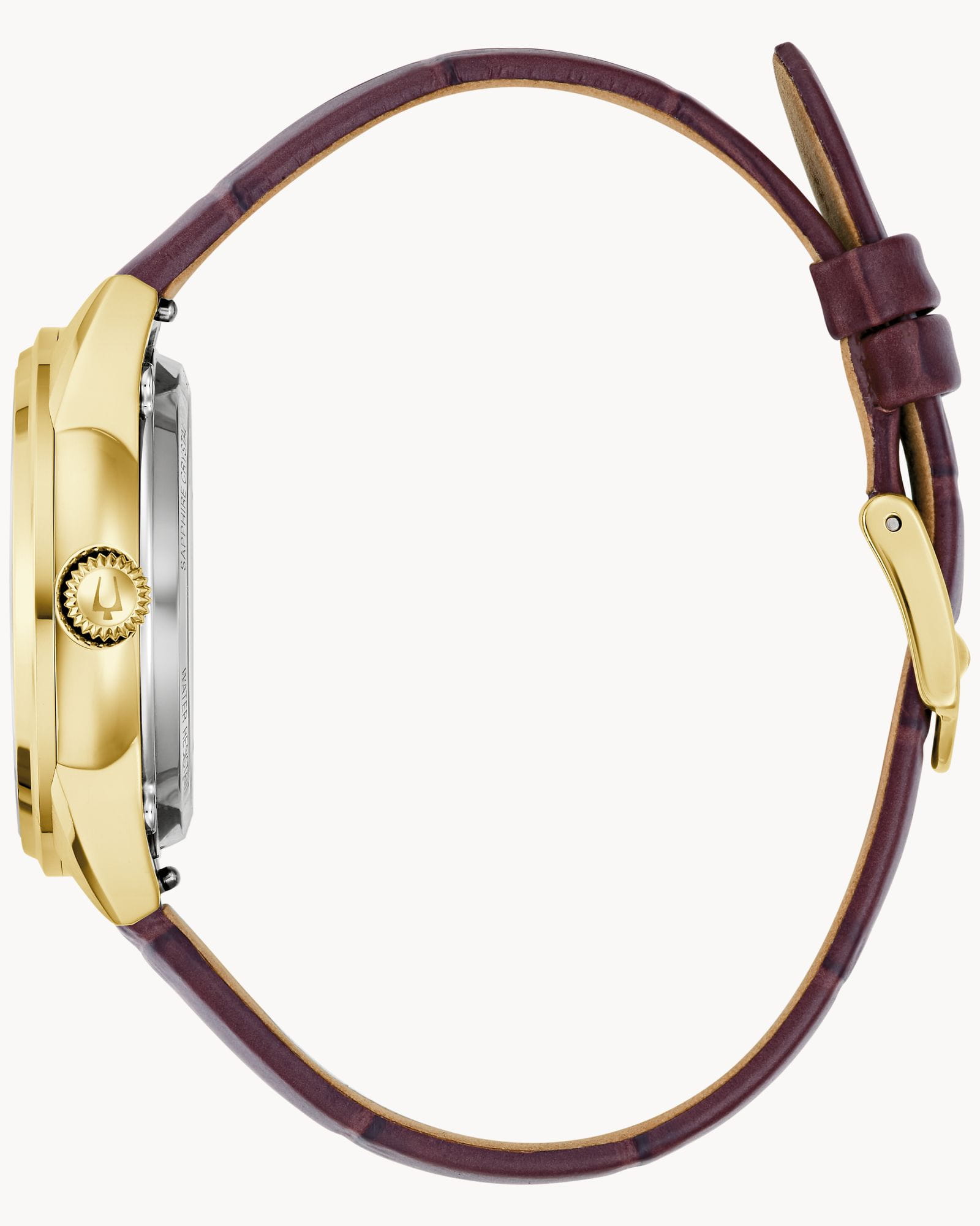 Женские механические часы с автоподзаводом Bulova Automatic Ladies 97L179 – отражающий идеальное сочетание современного дизайна, надёжности и функциональности. Элегантный облик станет превосходным завершением образа, наделив его индивидуальным характером. Корпус из нержавеющей стали с PVD-покрытиемPVDУльтратонкое покрытие наносится в технике вакуумного напыления, сочетает в себе нитрид титана особой прочности со слоем золота или оксида хрома. Несёт в себе декоративную или защитную функцию. золотистого цвета, диаметром 34 мм идеально сбалансирован и элегантен. Защиту циферблата обеспечивает прочное сапфировое стеклоСапфировое стеклоПрочный и надёжный материал из кристалла сапфира синтетического происхождения, характеризующийся особой твёрдостью и устойчивостью к царапинам и повреждениям. с антибликовым покрытиемАнтибликовое покрытиеСлой оксида металла в 0,13-0,3 микрон, благодаря которому стекло часов не бликует и не отражает свет. Антибликовое покрытие уменьшает отражение света в 10 раз, обеспечивая отличную читаемость показателей циферблата. гарантирующее четкость показаний. Циферблат из белого перламутра украшен золотистыми стрелками и метками, а также цветочным апертуром, открывающим вид на 21-каратный автоматический механизм. Кожаный ремешок на стандартной застежке обеспечивает комфортное ношение. Водозащита 30 метров позволит защитить корпус от случайных брызг или капель дождя. Эта модель – отличный выбор для тех, кто ищет сочетание стиля, качества и функциональности. Часы станут не только полезным аксессуаром, но и выразительным элементом вашего имиджа.