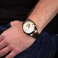 Мужские механические часы-скелетоны с автоподзаводом Bulova Surveyor 98A284 – отражающий идеальное сочетание современного дизайна, надёжности и функциональности. Элегантный облик станет превосходным завершением образа, наделив его индивидуальным характером. Корпус из нержавеющей стали серебристого цвета, диаметром 42 мм идеально сбалансирован и элегантен. Минеральное стеклоМинеральное стеклоМинеральное стекло представляет собой искусственно выращенный минерал кварца. Такое стекло отличается особой устойчивостью к повреждениям и царапинам. Уступает по некоторым качествам сапфировому стеклу. защищает циферблат от царапин и устойчивое к мелким механическим повреждениям. Неподвижный безельБезельВнешний ободок, закрепляющий стекло. В спортивных часах так называется поворотное кольцо с делениями на циферблате, выполняет роль таймера – замеряет отрезки времени на шкале. Неподвижный безель – элемент декора. Однонаправленно вращающийся безель на дайверских часах позволяет фиксировать моменты погружения и выныривания на поверхность. с IP-покрытиемIP-покрытиеМетод ионного напыления. Демонстрирует повышенную устойчивость к истиранию, окислению и химическим веществам. Под воздействием высокого давления и температуры около 1500°C молекулы металла надёжно соединяются с частицами корпуса часов. золотистого цвета. Стальной браслет с частичным IP-покрытиемIP-покрытиеМетод ионного напыления. Демонстрирует повышенную устойчивость к истиранию, окислению и химическим веществам. Под воздействием высокого давления и температуры около 1500°C молекулы металла надёжно соединяются с частицами корпуса часов. на застёжке-бабочке с кнопкамиЗастёжка "бабочка"Такой вид застёжки дополняется предохранителями, помогающими избежать случайного раскрытия браслета. Обладают изящным исполнением. обеспечивает комфортное ношение. Стрелки с люминесцентным покрытиемЛюминесцентное покрытиеПозволяет считывать показания времени в темноте. Производители наносят на стрелки, часовые индексы, безель или поверхность циферблата светонакопительный состав, дающий холодное свечение.. Водозащита 30 метров позволит защитить корпус от случайных брызг или капель дождя. Эта модель – отличный выбор для тех, кто ищет сочетание стиля, качества и функциональности. Часы станут не только полезным аксессуаром, но и выразительным элементом вашего имиджа.