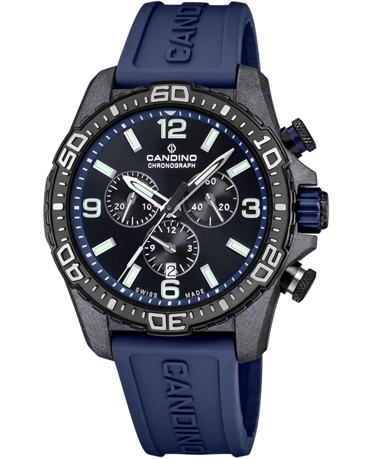 Мужские швейцарские часы с хронографомХронографФункция позволяет измерять отрезки времени с особой точностью: часы, минуты, секунды. Верным признаком хронографа является наличие на циферблате 3 дополнительных окошек-счётчиков. Candino Chronos C4779/2 — это воплощение швейцарского мастерства и элегантности. Оснащённые высокоточным кварцевым механизмом, они обеспечивают безупречное измерение времени. Сапфировое стеклоСапфировое стеклоПрочный и надёжный материал из кристалла сапфира синтетического происхождения, характеризующийся особой твёрдостью и устойчивостью к царапинам и повреждениям. защищает циферблат от мелких царапин и повреждений, сохраняя его кристальную чистоту.