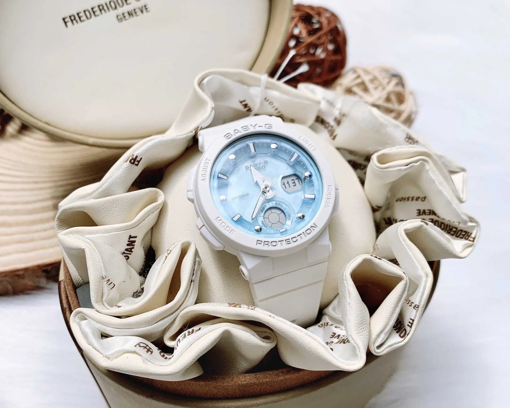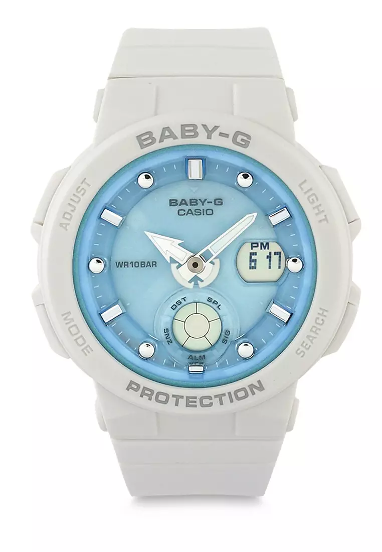 Женские японские часы Casio Baby-G BGA-250-7A1 из коллекции Baby-G в белом цвете дополнят образ на летнюю вечеринку.