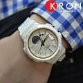 Наручные часы с золотистыми деталями выполнены в лаконичном белом цвете, делая модель универсальным вариантом для любого образа. Они оснащены шагомером, измеряющим количество шагов от 0 до 999999. Мы можем наблюдать отображение пройденных шагов за 5 часов, есть возможность установить ежедневную цель от 1000 до 50000 шагов. Полимерный ударопрочный корпусУдаропрочный корпусМеханизм заключён в корпус, выполненный из современных материалов, устойчивых к ударам, механическим повреждениям и падению с высоты: инновационный пластик, карбон, нержавеющая сталь, титан. отличается устойчивостью к падению и повреждениям, которые неизбежно возникают на занятиях спортом. Японский кварцевый механизм с точностью хода +/- 15 секунд в месяц. Срок службы батарейки составляет 2 года. Минеральное стекло. Светодиодная подсветкаСветодиодная подсветкаСветодиодная или LED-подсветка обеспечивает появление яркого холодного свечения за счёт LED-элементов - маленьких лампочек. Они потребляют минимальное количество энергии, чаще всего можно встретить 1 светодиод, в нижней части циферблата.. Включение и выключение звука кнопок. Автоматический календарь до 2099 года, 5 будильников, отображение второго часового пояса, секундомер, таймер обратного отсчёта. Габариты: 42,6 x 45,2 x 13,3 мм.