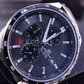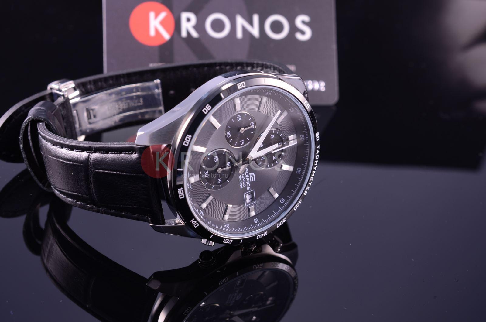 Стильный, мужские наручные часы Casio Edifice надежные и практичные. Кварцевый японский механизм Miyota. Точность хода не хуже -10 +15 сек./в месяц. Часы оснащены функцией хронографа. Циферблат черного цвета с контрастными, позолоченными индексами.Стрелки и индексы с светонакопительным нанесением. Корпус выполнен из нержавеющей стали. Ремешок из натуральной кожи, черного цвета, с удобной застежкой. Минеральное стекло устойчиво к появлению царапин. Водонепроницаемость 100М. В часах можно плавать. Степень водонепроницаемости не является величиной, эквивалентной функциональной рабочей глубине.