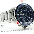 Спортивный хронографХронографФункция позволяет измерять отрезки времени с особой точностью: часы, минуты, секунды. Верным признаком хронографа является наличие на циферблате 3 дополнительных окошек-счётчиков. имеет синий циферблат с жёлтым цветовым акцентом, счётчики расположены на левой стороне. Стрелки и часовые метки имеют люминесцентное покрытиеЛюминесцентное покрытиеПозволяет считывать показания времени в темноте. Производители наносят на стрелки, часовые индексы, безель или поверхность циферблата светонакопительный состав, дающий холодное свечение., позволяющее без проблем считывать показатели времени в темноте. Браслет из нержавеющей стали надёжно держится на запястье, не нужно беспокоиться о случайном раскрытии застёжки. Технология . Стекло из сапфира. Водозащита до 100 метров. Габариты: 52 x 46,1 x 11,8 мм.