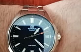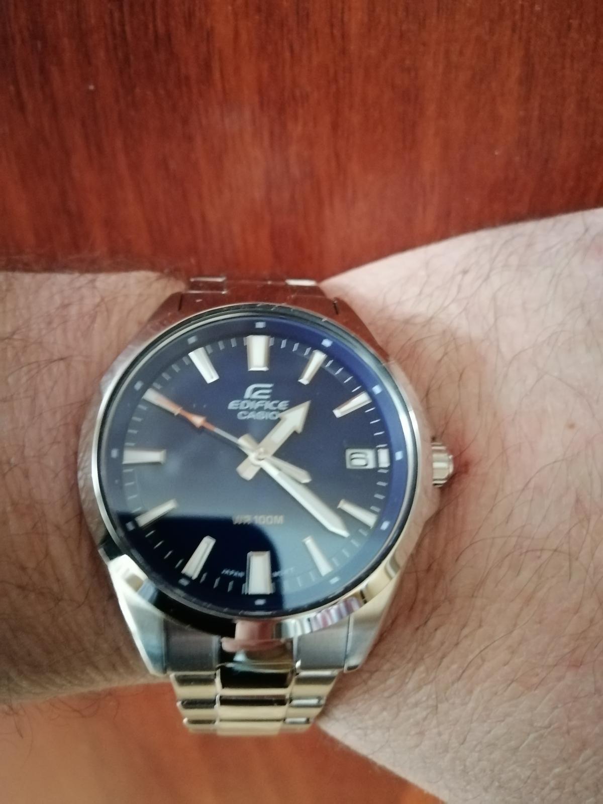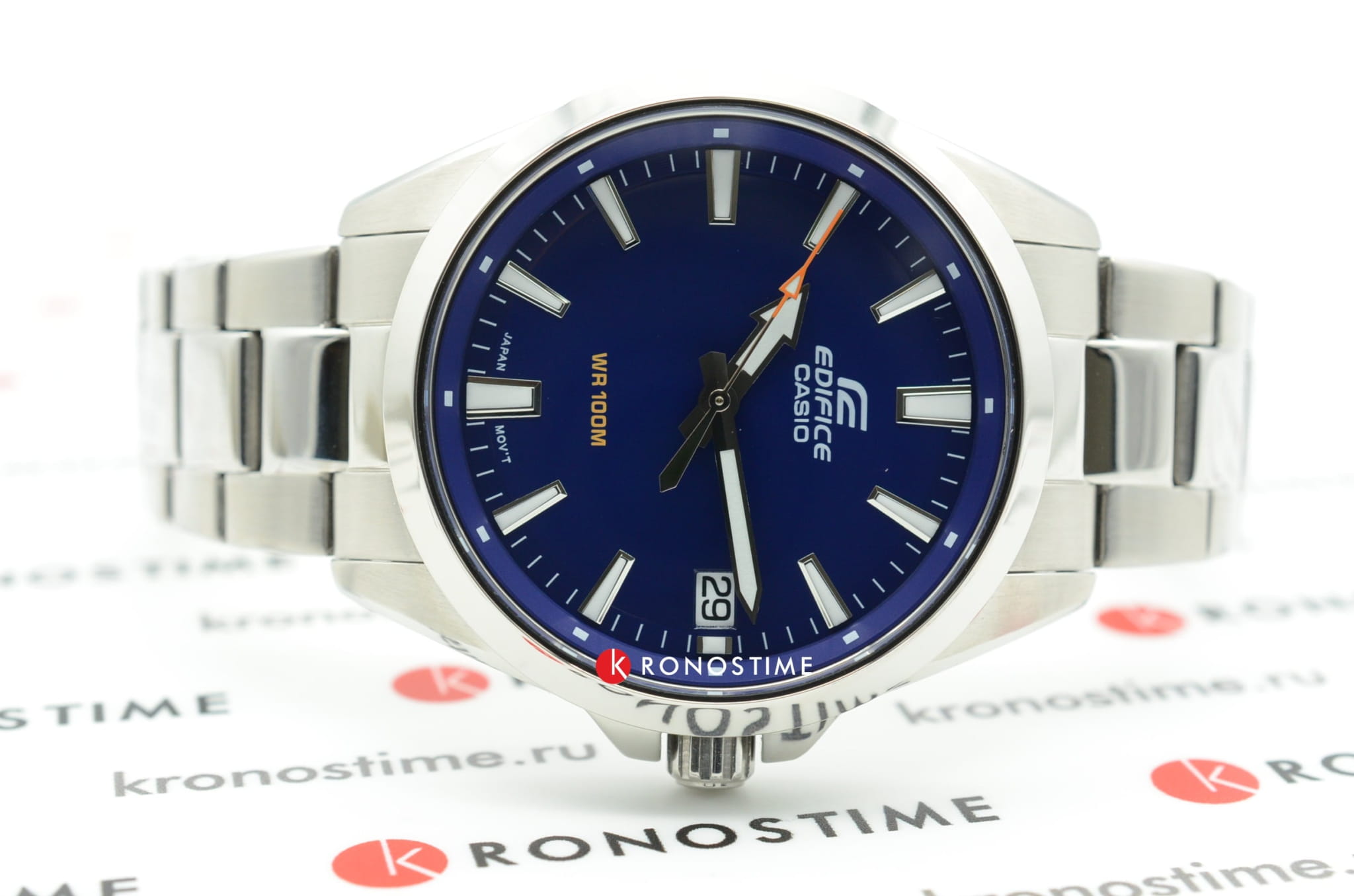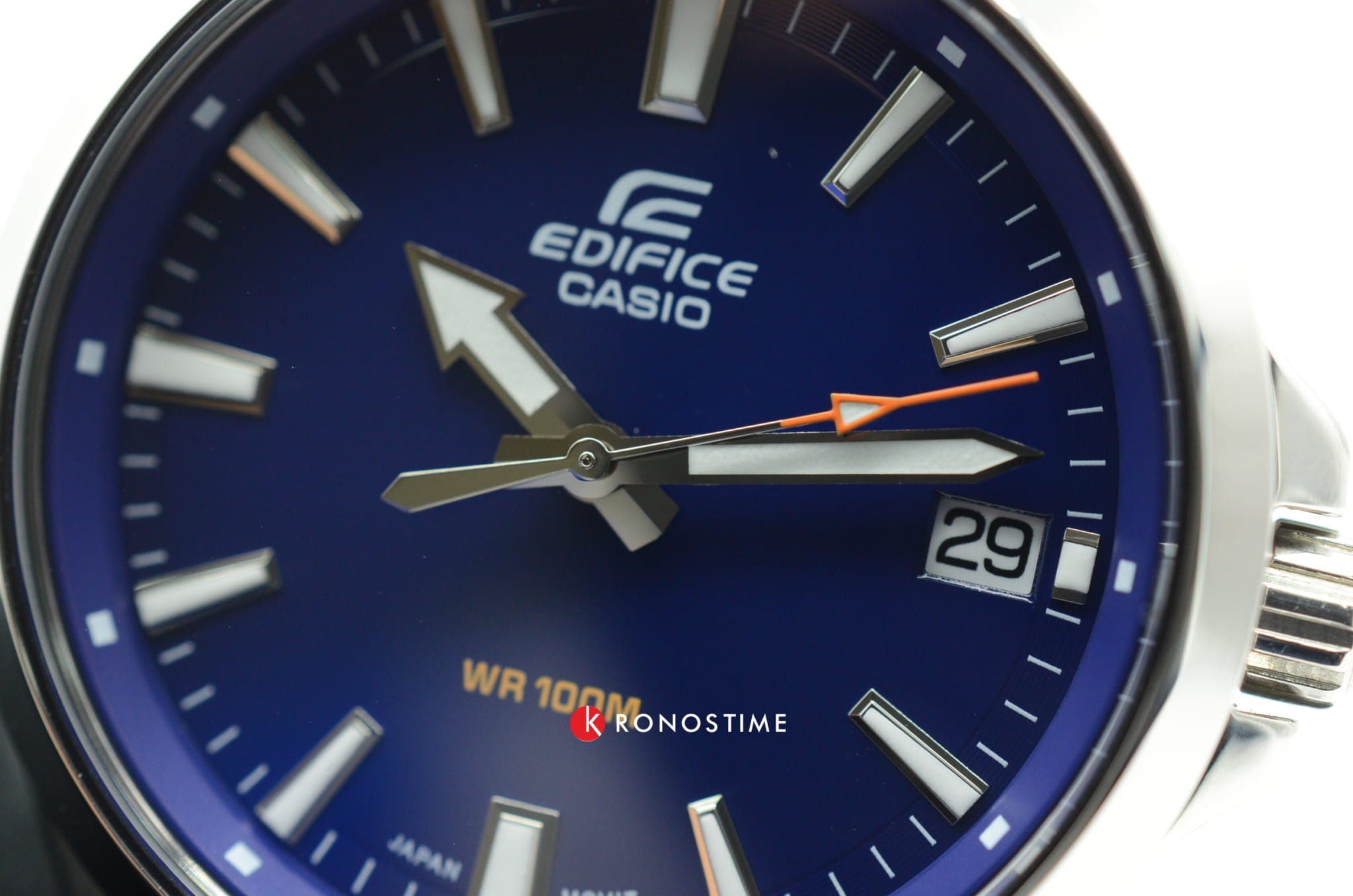 Брендовый аксессуар из серии EFV-100 будет отлично смотреться как с деловым костюмом, так и с повседневной одеждой. Синий циферблат дополнен контрастными стрелками и метками, секундная стрелка облегчает читаемость показателей благодаря яркому наконечнику. Минималистичные часы выполнены из нержавеющей стали 316L, материал отличается долговечностью и устойчивостью к царапинам. Кварцевый механизм работает от батарейки, срок её службы составит 3 года. Люминесцентная подсветка NeobriteЛюминесцентное покрытиеПозволяет считывать показания времени в темноте. Производители наносят на стрелки, часовые индексы, безель или поверхность циферблата светонакопительный состав, дающий холодное свечение.. Водостойкость 10 бар. Минеральное стекло. Прямоугольная апертура даты. Габариты: 48 x 42 x 10,9 мм.