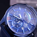 Casio выпускает пополнение у часов-хронографов EFV-530 с секундомером,задней крышкой с винтовым фиксатором,раскладывающейся застежкой, расстегиваемой одним касанием. Полностью голубые часы имеют кожаный ремешок, а фон циферблата выполнен в карбоновой текстуре, которую так любят использовать в тюннинге автомобилей. Часы водонепроницаемы до 100 Бар, имеют секундомер и отображают дату.