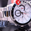Сдержанный белый циферблат украшен контрастными чёрными и красными деталями, такая цветовая гамма отлично гармонирует с серебристым блеском нержавеющей стали 316L. Спортивный стиль модели выглядит динамично, все взгляды окружающих будут направлены на ваше запястье. Кварцевый механизм получает питание от батарейки, рассчитанной на 2 года. Ударопрочный корпусУдаропрочный корпусМеханизм заключён в корпус, выполненный из современных материалов, устойчивых к ударам, механическим повреждениям и падению с высоты: инновационный пластик, карбон, нержавеющая сталь, титан.. Минеральное стеклоМинеральное стеклоМинеральное стекло представляет собой искусственно выращенный минерал кварца. Такое стекло отличается особой устойчивостью к повреждениям и царапинам. Уступает по некоторым качествам сапфировому стеклу.. БезельБезельВнешний ободок, закрепляющий стекло. В спортивных часах так называется поворотное кольцо с делениями на циферблате, выполняет роль таймера – замеряет отрезки времени на шкале. Неподвижный безель – элемент декора. Однонаправленно вращающийся безель на дайверских часах позволяет фиксировать моменты погружения и выныривания на поверхность. с IP-покрытиемIP-покрытиеМетод ионного напыления. Демонстрирует повышенную устойчивость к истиранию, окислению и химическим веществам. Под воздействием высокого давления и температуры около 1500°C молекулы металла надёжно соединяются с частицами корпуса часов.. Габариты: 48,5 x 43,8 x 11,6 мм. Подсветка NeobriteПодсветка NeobriteИспользование светонакопительных составов на основе сульфида цинка или алюмината стронция, яркий свет можно наблюдать на протяжении 6-10 часов после «зарядки» часов около источника света. продолжает светиться в темноте даже после непродолжительного пребывания на свету. Часы-хронографХронографФункция позволяет измерять отрезки времени с особой точностью: часы, минуты, секунды. Верным признаком хронографа является наличие на циферблате 3 дополнительных окошек-счётчиков. с секундомеромСекундомерСекундоме́р — прибор, способный измерять интервалы времени с точностью до долей секунды. с точностью 1с и временем измерения 1ч. 12-ти и 24-х часовой формат времени. Заводная головка с защитой. Задняя крышка с винтовым фиксатором. Стальной браслет на раскладной застёжкеРаскладная застёжкаТакой тип застёжки используется только на браслетах из металла. Она никогда не раскрывается полностью, происходит разделение на 2 и более частей. Раскладывающая застёжка снизит вероятность потери часов к минимуму., расстегиваемая одним касанием.