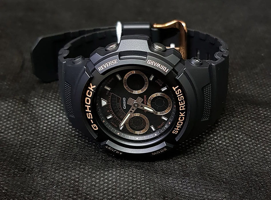 Компактный аксессуар имеет противоударный корпусУдаропрочный корпусМеханизм заключён в корпус, выполненный из современных материалов, устойчивых к ударам, механическим повреждениям и падению с высоты: инновационный пластик, карбон, нержавеющая сталь, титан. из полимерного материала, способного выдерживать падения с высоты и повреждения. Привлекательно смотрится безельБезельВнешний ободок, закрепляющий стекло. В спортивных часах так называется поворотное кольцо с делениями на циферблате, выполняет роль таймера – замеряет отрезки времени на шкале. Неподвижный безель – элемент декора. Однонаправленно вращающийся безель на дайверских часах позволяет фиксировать моменты погружения и выныривания на поверхность. из нержавеющей стали 316L с IP-покрытиемIP-покрытиеМетод ионного напыления. Демонстрирует повышенную устойчивость к истиранию, окислению и химическим веществам. Под воздействием высокого давления и температуры около 1500°C молекулы металла надёжно соединяются с частицами корпуса часов., а также детали в цвете розового золота. Аналого-цифровые часы работают от батарейки, рассчитанной на 3 года безупречной эксплуатации. Минеральное стекло. Автоматическая светодиодная подсветкаСветодиодная подсветкаСветодиодная или LED-подсветка обеспечивает появление яркого холодного свечения за счёт LED-элементов - маленьких лампочек. Они потребляют минимальное количество энергии, чаще всего можно встретить 1 светодиод, в нижней части циферблата. дисплея, стрелки и метки с люминесцентным покрытиемЛюминесцентное покрытиеПозволяет считывать показания времени в темноте. Производители наносят на стрелки, часовые индексы, безель или поверхность циферблата светонакопительный состав, дающий холодное свечение.. 12/24-часовое отображение времени. Надёжный полимерный ремешок. Водонепроницаемость 200 метров. Дополнительные возможности: таймер, будильник, мировое времяМировое время Полезное часовое усложнение, отображающее время в основных городах и известных областях по всему миру, оно связано с часовыми поясами, удобно для путешественников и бизнесменов. , секундомер, автоматический календарь. Габариты: 46,4 x 52 x 14,9 мм.