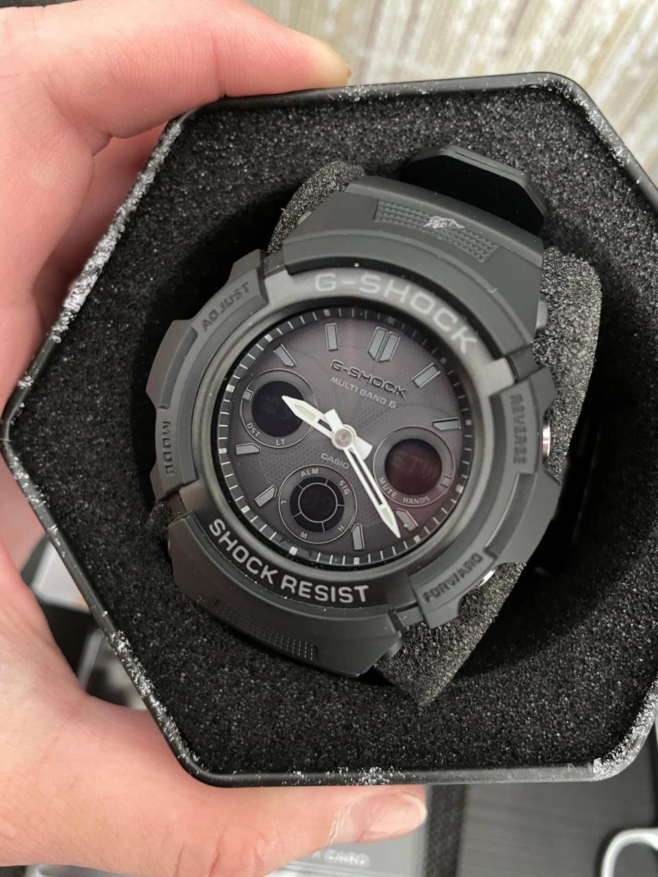 Были до этого GA-100 и сразу после них эта модель кажется маловатой, но по истечении 1 недели ты понимаешь, что наконец-то нашёл свои часы!!! Лёгкие, удобные и при этом со всеми плюсами G-Shock! Читал отзывы о плохой видимости с 3-х экранов, но здесь можно заморочиться и заказать модель на eBay в чёрном цвете и с 3-мя светлыми экранами, правда стрелки будут не полностью белыми, AWG-M100SBB-1AJF, в Москве таких расцветок нет!!!