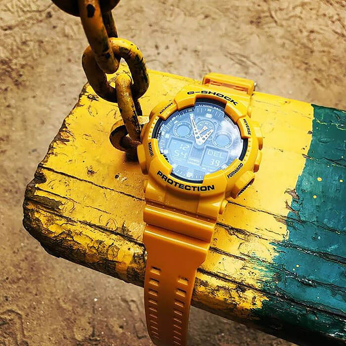 Японские мужские часы-хронографХронографФункция позволяет измерять отрезки времени с особой точностью: часы, минуты, секунды. Верным признаком хронографа является наличие на циферблате 3 дополнительных окошек-счётчиков. Casio G-Shock GA-100A-9A. Противоударный пластиковый корпус с карбоновыми волокнами более прочный и, в то же время, более легкий. Минеральное стеклоМинеральное стеклоМинеральное стекло представляет собой искусственно выращенный минерал кварца. Такое стекло отличается особой устойчивостью к повреждениям и царапинам. Уступает по некоторым качествам сапфировому стеклу. устойчивое к появлению царапин, обладающее высокой прозрачностью. Ударопрочный корпусУдаропрочный корпусМеханизм заключён в корпус, выполненный из современных материалов, устойчивых к ударам, механическим повреждениям и падению с высоты: инновационный пластик, карбон, нержавеющая сталь, титан. защищает механизм от ударов и вибрации. Многокомпонентный циферблат состоит из цифровых окошек указателей числа и дня недели, а также индикатора режима работы часов, который расположен в позиции 9 часов и выполнен в виде пропеллера. Светодиодная автоподсветка - при повороте часов в сторону лица подсветка дисплея осуществляется автоматически. Настраиваемое послесвечение 1,5 или 3сек. Мировое времяМировое время Полезное часовое усложнение, отображающее время в основных городах и известных областях по всему миру, оно связано с часовыми поясами, удобно для путешественников и бизнесменов. – 48 городов (29 часовых поясов). СекундомерСекундомерСекундоме́р — прибор, способный измерять интервалы времени с точностью до долей секунды. с точностью измерения 1/100 секунды и измерением до 23 часов 59 минут 59,99 cек. ТаймерТаймерОтсчитывает секунды в обратном направлении в заданном интервале времени. обратного отсчета (диапазон времени 24 часа), автоматический календарь, 12/24 отображение времени. 5 будильниковБудильникБуди́льник — часы, в заданный момент времени подающие звуковой, световой и/или в редких случаях другой сигнал., один с функцией Snooze, ежечасный сигнал. Класс водозащиты: 200 метров, позволит плавать, нырять и заниматься другими водными видами спорта. Ремешок из полимерного материала на стандартной застежке.