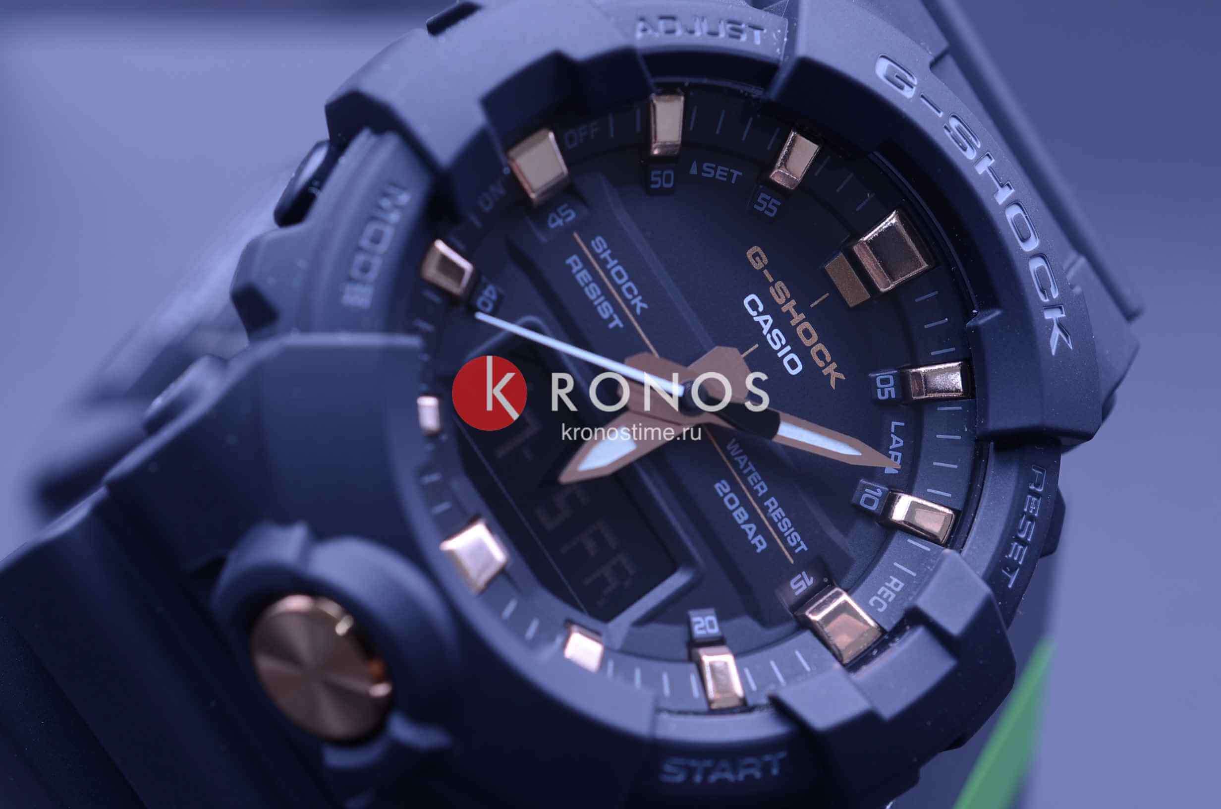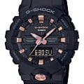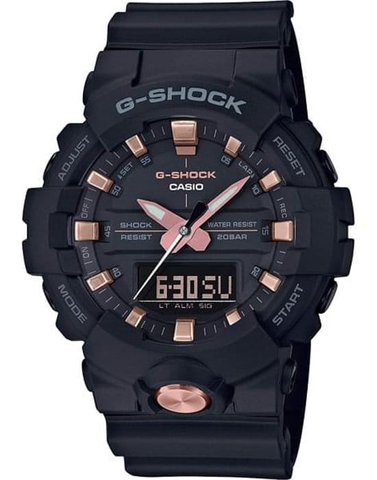 Стильная фешн-модель из серии G-SHOCK GA-800 в черном корпусе с деталями циферблата и корпуса цвета розового золота. Внешне часы данной серии схожи с джишоками GA-700, однако 800-серия получила уменьшенный размер корпуса и теперь вам не нужно обладать запястьем геракла, чтобы комфортно носить любимые шоки!