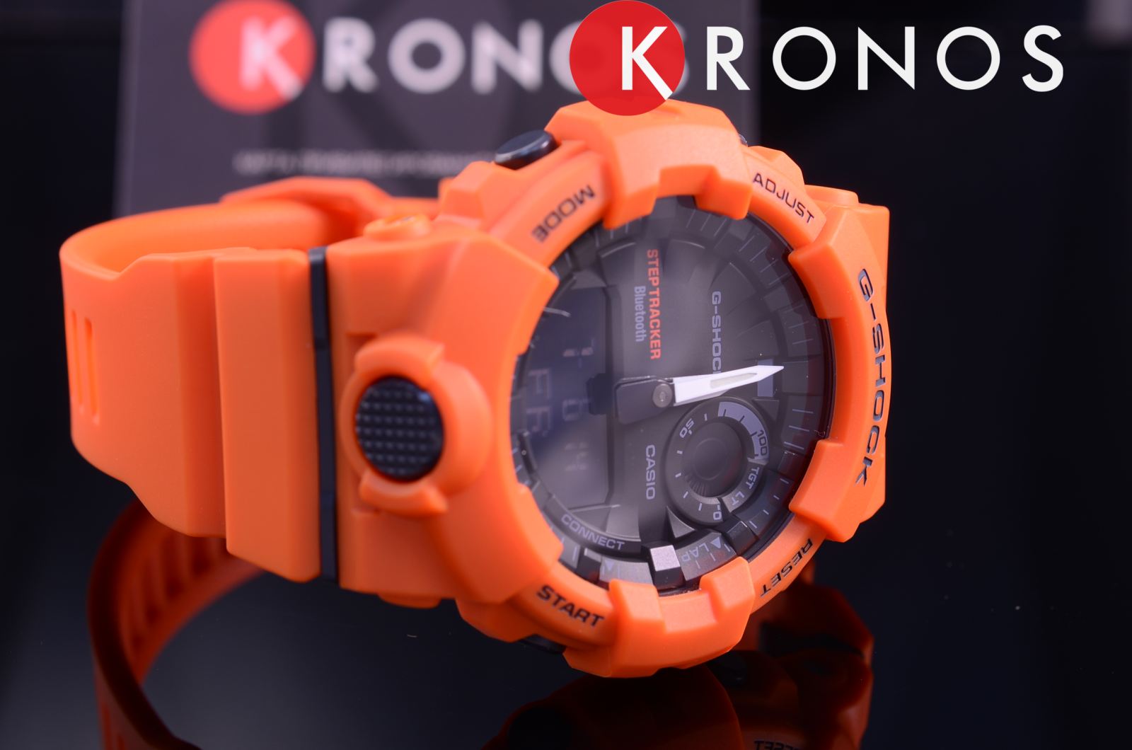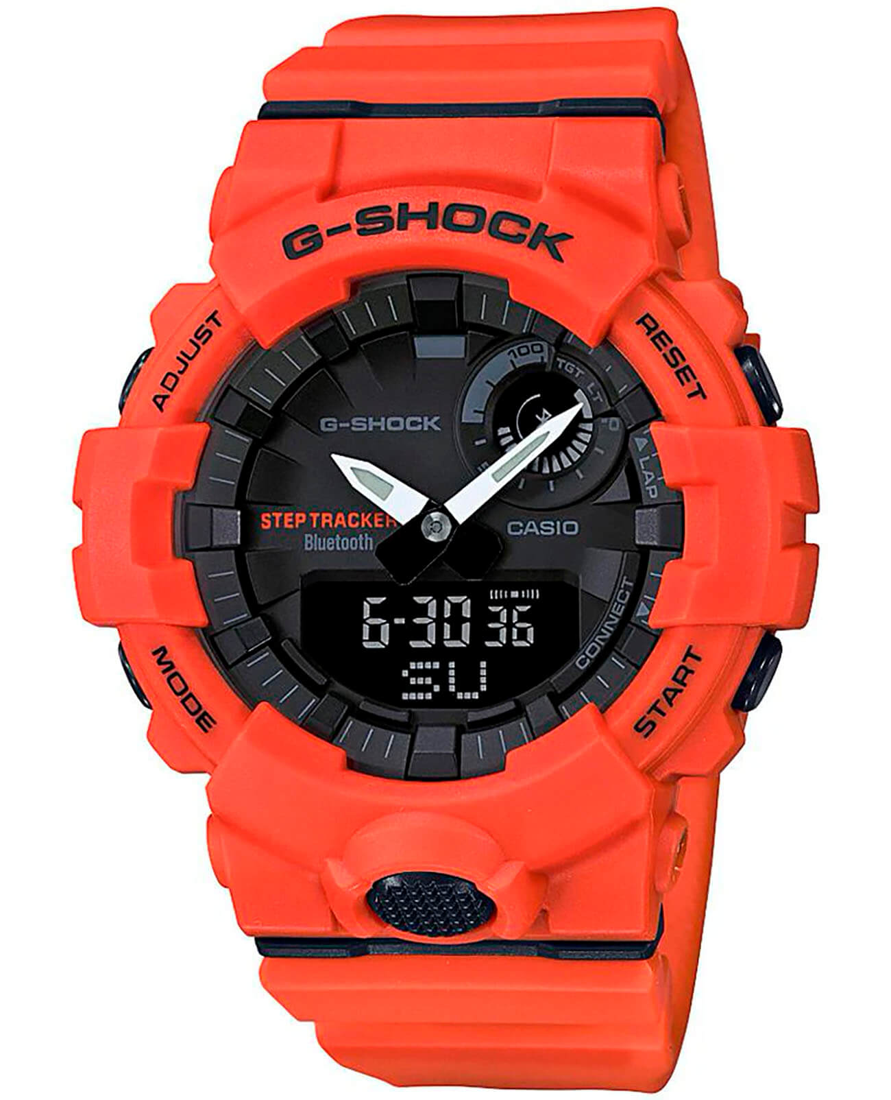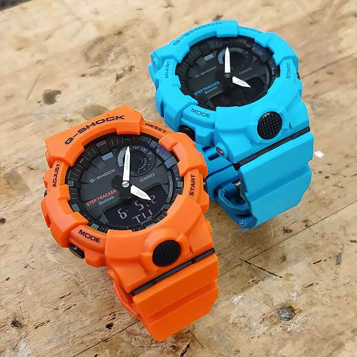 Наручные часы оранжевого оттенка с противоударным корпусомУдаропрочный корпусМеханизм заключён в корпус, выполненный из современных материалов, устойчивых к ударам, механическим повреждениям и падению с высоты: инновационный пластик, карбон, нержавеющая сталь, титан. сделаны из полимерного пластика, который устойчив к повреждениям и падению с высоты. Такой же материал был выбран и для гибкого ремешка, обеспечивающего комфортное ношение. Это первая модель из линейки G-Shock, оснащённая шагомером, теперь вы сможете в любое время следить за своей активностью. Японский кварцевый механизм работает от батарейки, срок её службы - 2 года. Минеральное стекло. Светодиодная подсветкаСветодиодная подсветкаСветодиодная или LED-подсветка обеспечивает появление яркого холодного свечения за счёт LED-элементов - маленьких лампочек. Они потребляют минимальное количество энергии, чаще всего можно встретить 1 светодиод, в нижней части циферблата. циферблата, люминесцентное покрытиеЛюминесцентное покрытиеПозволяет считывать показания времени в темноте. Производители наносят на стрелки, часовые индексы, безель или поверхность циферблата светонакопительный состав, дающий холодное свечение. стрелок. Bluetooth-синхронизацияBluetoothСовременная технология, позволяющая синхронизировать часы с телефоном и переносить данные. Часы с Bluetooth расширяют возможности вашего смартфона и делают его использование ещё более удобным., таймер с автоповтором, секундомер, автоматический календарь, будильник. Водостойкость при давлении 20 бар. Габариты: 54,1 x 48,6 x 15,5 мм.