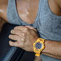 Аксессуар в ярком исполнении идеально гармонирует с любой одеждой. Это незаменимый атрибут для каждого спортсмена, ведь весь функционал часов направлен на повышение эффективности тренировок. Это и шагомер с измерением количества шагов от 0 до 999999, и секундомер с памятью на 200 кругов, мультифункциональный таймер, будильник поможет не проспать раннее занятие в спортзале. С внедрением технологии BluetoothBluetoothСовременная технология, позволяющая синхронизировать часы с телефоном и переносить данные. Часы с Bluetooth расширяют возможности вашего смартфона и делают его использование ещё более удобным. появилась возможность передавать все данные на смартфон, а в приложении G-Shock Connected Phone рассчитывать ежедневную норму шагов и учитывать сожжённые калории. Японский кварцевый калибр работает от батарейки, срок службы которой - 3 года. Пластиковый противоударный корпусУдаропрочный корпусМеханизм заключён в корпус, выполненный из современных материалов, устойчивых к ударам, механическим повреждениям и падению с высоты: инновационный пластик, карбон, нержавеющая сталь, титан.. Браслет из полимерного материала. Минеральное стекло. Стрелки с люминесцентной подсветкойЛюминесцентное покрытиеПозволяет считывать показания времени в темноте. Производители наносят на стрелки, часовые индексы, безель или поверхность циферблата светонакопительный состав, дающий холодное свечение., яркая светодиодная подсветкаСветодиодная подсветкаСветодиодная или LED-подсветка обеспечивает появление яркого холодного свечения за счёт LED-элементов - маленьких лампочек. Они потребляют минимальное количество энергии, чаще всего можно встретить 1 светодиод, в нижней части циферблата. циферблата. Водозащита до 20 бар. Мировое времяМировое время Полезное часовое усложнение, отображающее время в основных городах и известных областях по всему миру, оно связано с часовыми поясами, удобно для путешественников и бизнесменов. , автоматический календарь до 2099 года, хронографХронографФункция позволяет измерять отрезки времени с особой точностью: часы, минуты, секунды. Верным признаком хронографа является наличие на циферблате 3 дополнительных окошек-счётчиков.. Габариты: 54,1 x 48,6 x 15,5 мм.