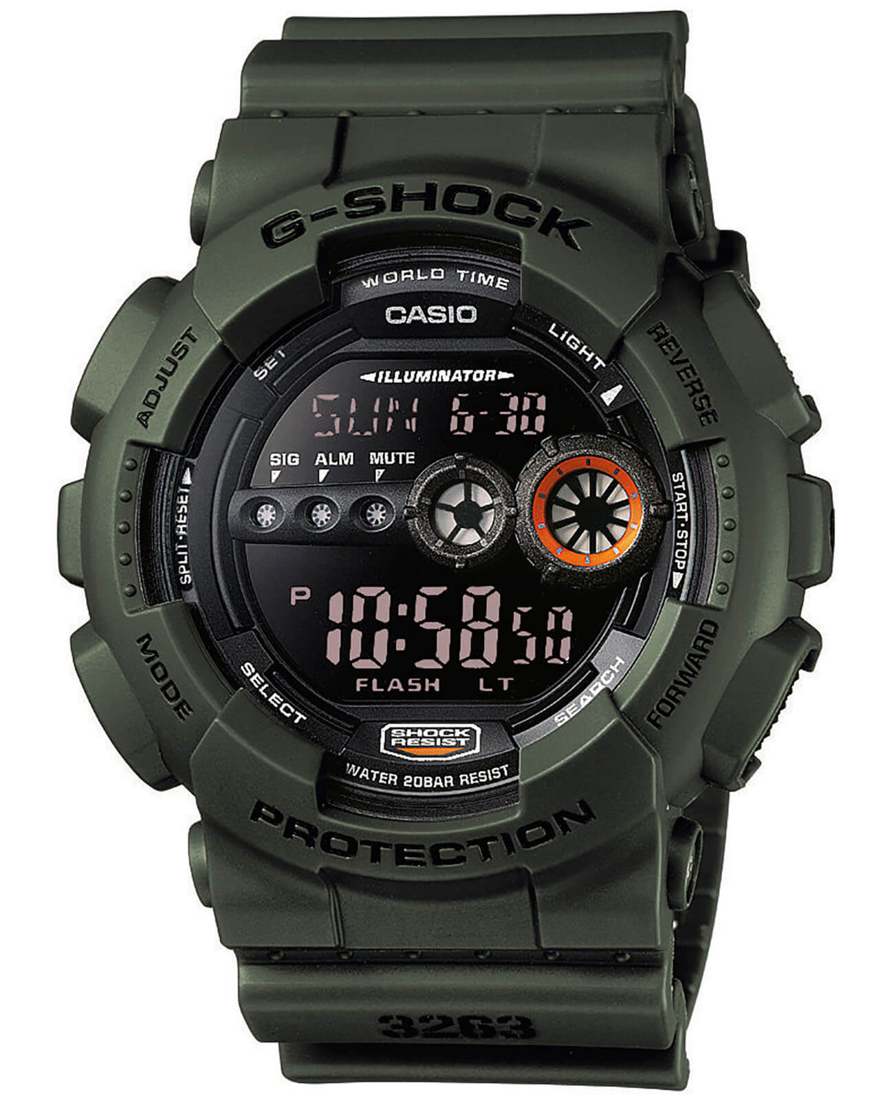 Японские мужские часы GD-100MS-3ER из коллекции G-Shock представлены в строгом и лаконичном облике с сохранением общего спортивного оформления.