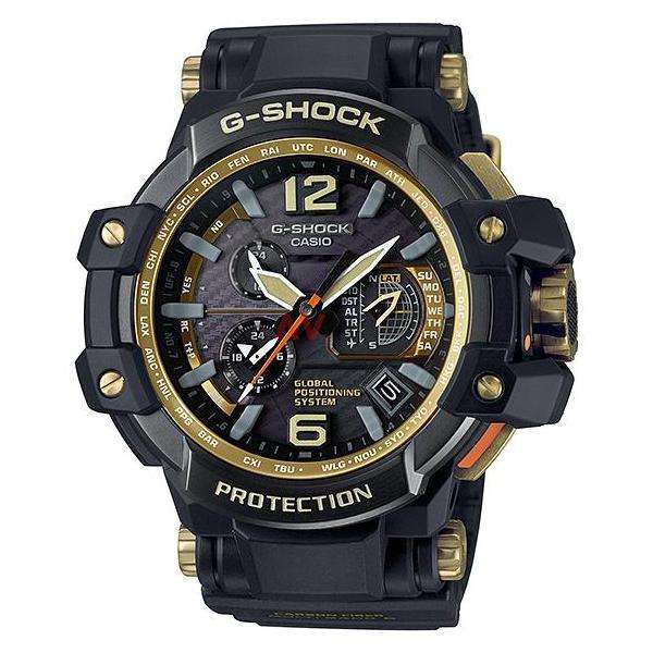 Перед вами флагманская лимитированная модель из серии G-SHOCK GPW в "золотом" исполнении. Черный безель из ионизированной стали дополнен деталями циферблата и корпуса, исполненными в золотом цвете. И конечно не стоит забывать, что это первые в мире часы с GPS- и радио-синхронизацией времени с атомными часами на разных континентах.