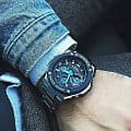 Наручные часы с синими деталями представляют собой действительно универсальный аксессуар. Их особенность заключается в наличии противоударного корпусаУдаропрочный корпусМеханизм заключён в корпус, выполненный из современных материалов, устойчивых к ударам, механическим повреждениям и падению с высоты: инновационный пластик, карбон, нержавеющая сталь, титан. с усиленной конструкцией: между слоями из нержавеющей стали 316L есть амортизирующая прокладка из полимерного материала. Это позволяет японскому кварцевому механизму оставаться максимально защищённым. Энергия для функционирования запасается солнечной батареей - технология . Индикатор уровня заряда аккумулятора. Возможность перемещения стрелок для удобной читаемости показателей с циферблата. Водозащита 20 бар. СветодиоднаяСветодиодная подсветкаСветодиодная или LED-подсветка обеспечивает появление яркого холодного свечения за счёт LED-элементов - маленьких лампочек. Они потребляют минимальное количество энергии, чаще всего можно встретить 1 светодиод, в нижней части циферблата. и люминесцентная подсветкаЛюминесцентное покрытиеПозволяет считывать показания времени в темноте. Производители наносят на стрелки, часовые индексы, безель или поверхность циферблата светонакопительный состав, дающий холодное свечение.. Надёжный стальной браслет. Коррекция текущего времени радиосигналом, мировое времяМировое время Полезное часовое усложнение, отображающее время в основных городах и известных областях по всему миру, оно связано с часовыми поясами, удобно для путешественников и бизнесменов. , таймер, 5 будильников, хронографХронографФункция позволяет измерять отрезки времени с особой точностью: часы, минуты, секунды. Верным признаком хронографа является наличие на циферблате 3 дополнительных окошек-счётчиков., секундомер, UTCUTCВсемирное кординационное время, не имеющее привязки к географическому положению Гринвича, основывается на атомном отсчёте времени. Регулировка времени осуществляется более точно, чем устаревшее GMT.
