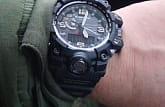 УдаропрочныеУдаропрочный корпусМеханизм заключён в корпус, выполненный из современных материалов, устойчивых к ударам, механическим повреждениям и падению с высоты: инновационный пластик, карбон, нержавеющая сталь, титан. мужские часы с солнечной батареей Casio G-Shock GWG-1000-1A, кварцевый механизм с высокой точностью. Класс водозащиты: 200 метров, позволит плавать, нырять и заниматься другими водными видами спорта. Корпус часов изготовлен из пластика. Пластиковый ремешок на стандартной застёжке. Питание от солнечной энергии Tough SolarTough SolarТехнология основана на подзарядке аккумулятора от источника солнечного света, специальная панель улавливает солнечные лучи и преобразует их в энергию для работы часов. Достаточно пары минут нахождения на солнце для функционирования часов в течении суток. - солнечные батарейки большой мощности, индикатор заряда батареи. Функция автоматического сохранения энергии. Время работы аккумулятора без подзарядки до 6 месяцев, при включенной функции сохранения энергии до 25 месяцев. Ударопрочный корпусУдаропрочный корпусМеханизм заключён в корпус, выполненный из современных материалов, устойчивых к ударам, механическим повреждениям и падению с высоты: инновационный пластик, карбон, нержавеющая сталь, титан.