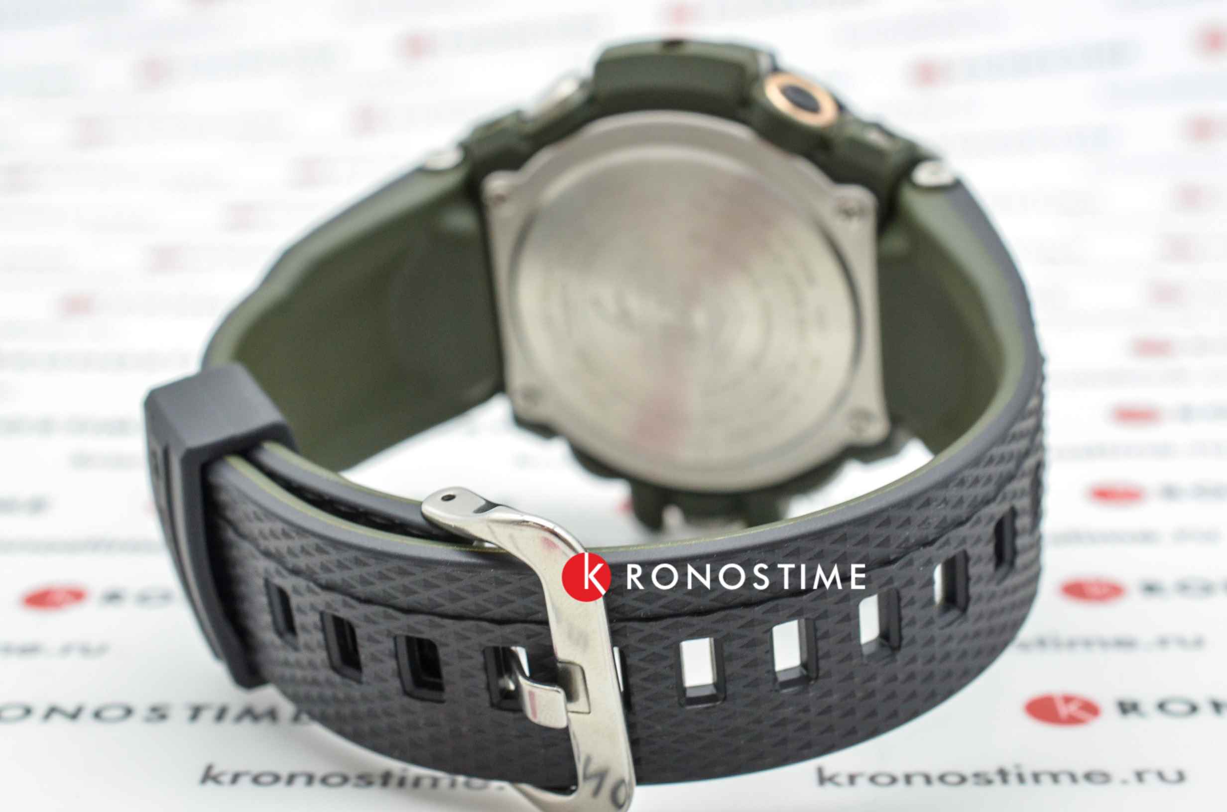 Наручные часы выпущены в брутальном, слегка агрессивном дизайне. Они оформлены в чёрном цвете, ярким элементом стал оранжевый счётчик на метке 9 часов, имитирующий турбину двигателя самолёта. Окошко предназначено для контроля уровня заряда батарейки, чем больше цвета видно, тем выше необходимость поставить часы на подзарядку. Модель серии G-Steel оснащена японским кварцевым механизмом, получаемым энергию для работы от источников света. Так реализуется технология . Аксессуар наделён противоударным корпусомУдаропрочный корпусМеханизм заключён в корпус, выполненный из современных материалов, устойчивых к ударам, механическим повреждениям и падению с высоты: инновационный пластик, карбон, нержавеющая сталь, титан. из полимера и стали 316L, что позволяет усилить конструкцию. На стрелки нанесено люминесцентное покрытиеЛюминесцентное покрытиеПозволяет считывать показания времени в темноте. Производители наносят на стрелки, часовые индексы, безель или поверхность циферблата светонакопительный состав, дающий холодное свечение., аналоговый циферблат подсвечивается светодиодомСветодиодная подсветкаСветодиодная или LED-подсветка обеспечивает появление яркого холодного свечения за счёт LED-элементов - маленьких лампочек. Они потребляют минимальное количество энергии, чаще всего можно встретить 1 светодиод, в нижней части циферблата.. Синхронизация со смартфоном BluetoothBluetoothСовременная технология, позволяющая синхронизировать часы с телефоном и переносить данные. Часы с Bluetooth расширяют возможности вашего смартфона и делают его использование ещё более удобным. позволяет устанавливать точное время, настраивать параметры будильника, мирового времениМировое время Полезное часовое усложнение, отображающее время в основных городах и известных областях по всему миру, оно связано с часовыми поясами, удобно для путешественников и бизнесменов. . Функции: ежедневный будильник, секундомер, хронографХронографФункция позволяет измерять отрезки времени с особой точностью: часы, минуты, секунды. Верным признаком хронографа является наличие на циферблате 3 дополнительных окошек-счётчиков., таймер, вечный календарьВечный календарьКлассическое часовое усложнение, представляющее собой календарь, рассчитанный на несколько лет вперёд (стандартно – до 2099 года). Определяет текущую дату, день недели, месяц.. Габариты: 58,1мм x 53,8мм x 14,1ммp>