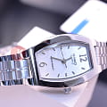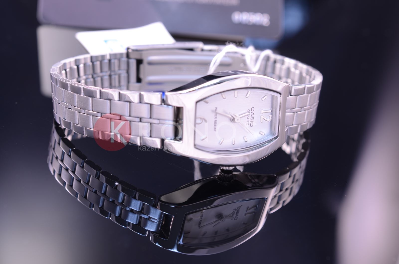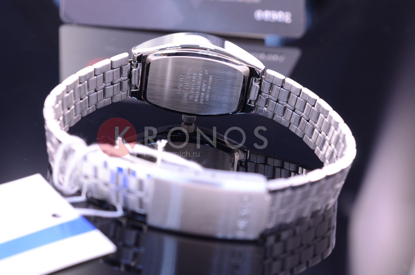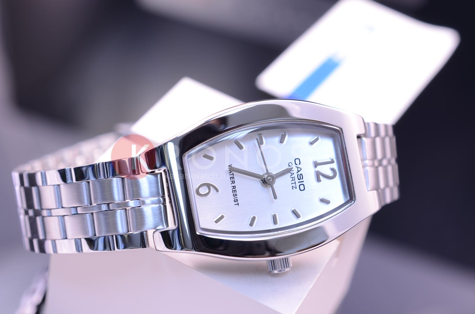 Элегантная модель от Casio отличается привлекательным и удобным дизайном. Выпуклый по бокам корпус выполнен из гипоаллергенной латуни. На светло-серебристом циферблате расположены временные отметки, сделанные в виде штрихов и арабских цифр. Гладкий, серебристый браслет сделан из нержавеющей стали и включает в себя складную застежку. Часы работают от батарейки, срок службы которой составляет 3 года. Вес аксессуара равен 48 граммам.