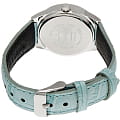 Аккуратный, серебристый корпус наручных часов сделан из нержавеющей, прочной стали. Стильный голубой ремень из натуральной кожи представляет собой удобную и долговечную деталь. Кроме временного отсчета, на циферблате также отображаются текущая дата и день недели. Выпуклое, минеральное стекло надежно защищает часы от негативных воздействий окружающей среды. Точность хода обеспечивается кварцевым механизмом. Срок эксплуатации батарейки составляет 3 года. Водонепроницаемость равна 50 WR.